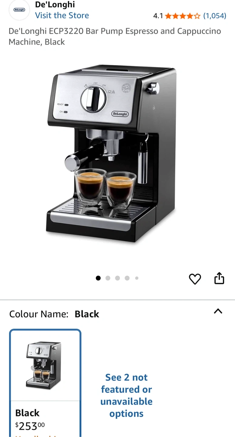 Selling a De'Longhi ECP3220 Bar Pump Espresso and Cappuccino Machine in black. It's perfect for making your favourite espresso drinks at home. Everything works, slight signs of use (OFF label is faded and frothing jug has slight rust in one spot- see picture). Includes original instructions etc but no box.