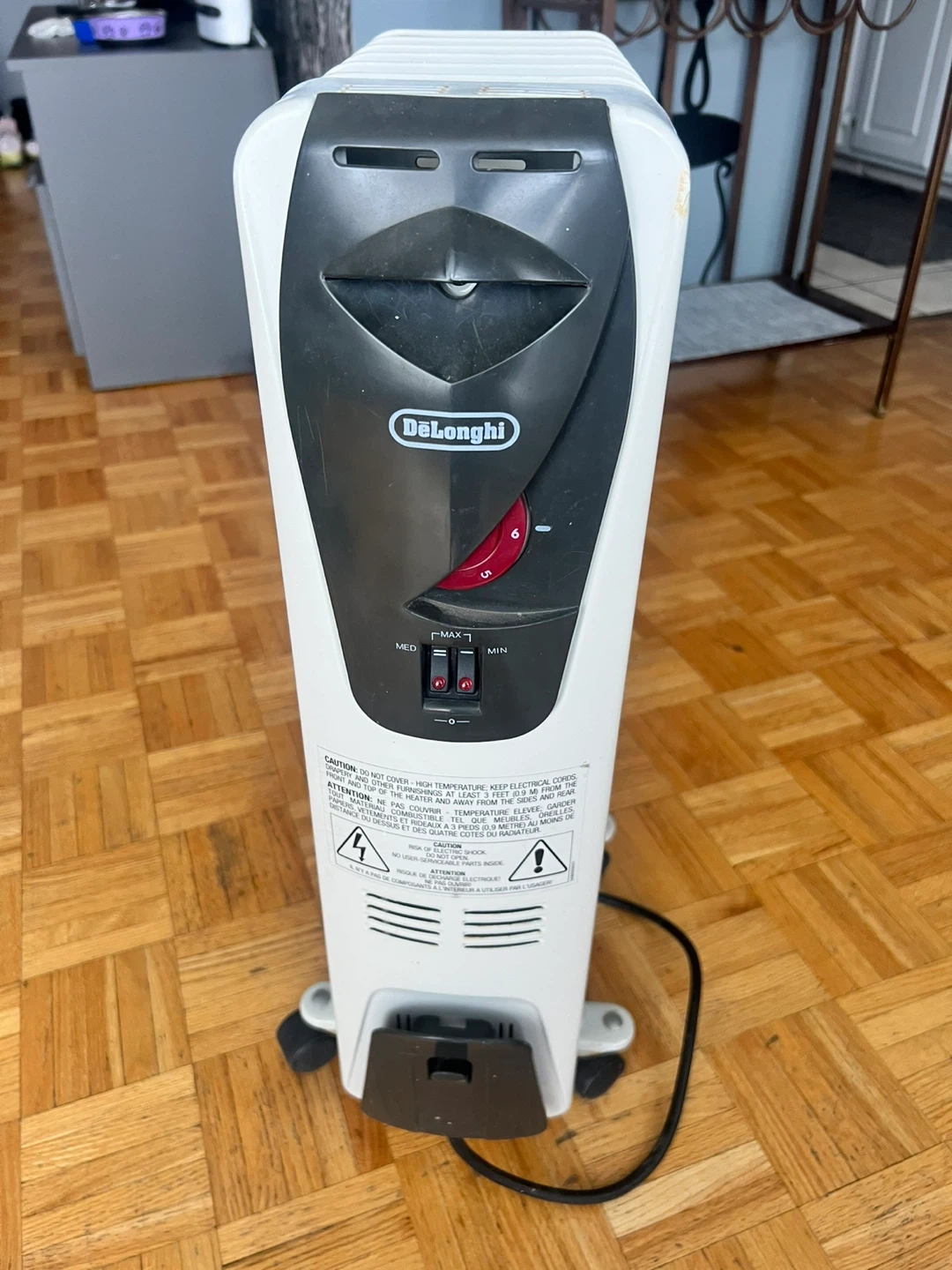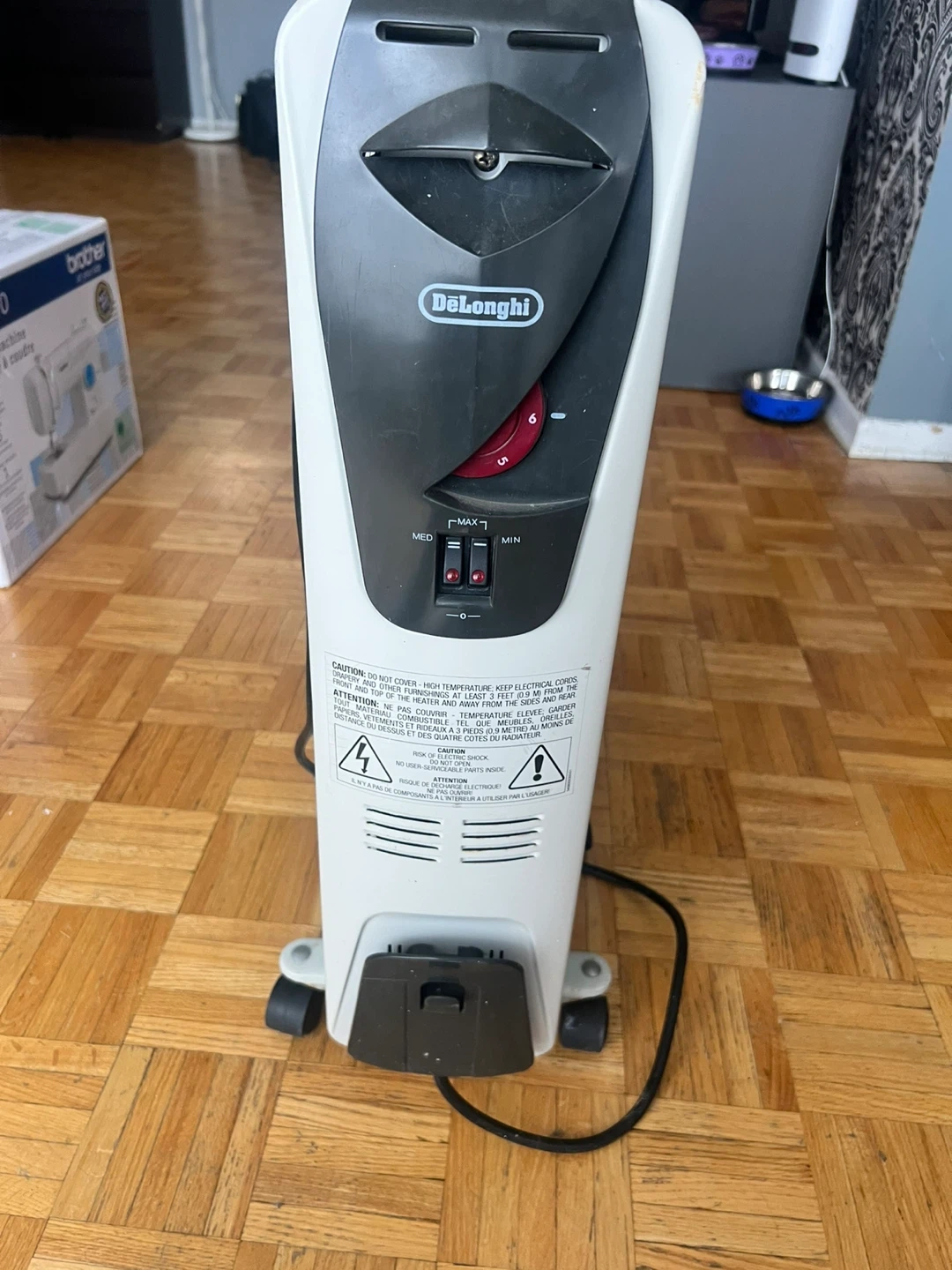 Keep cozy with this DeLonghi oil-filled radiator heater! It features adjustable settings from min to max. Perfect for adding some extra warmth to any room during these chilly months