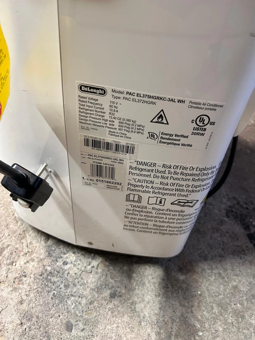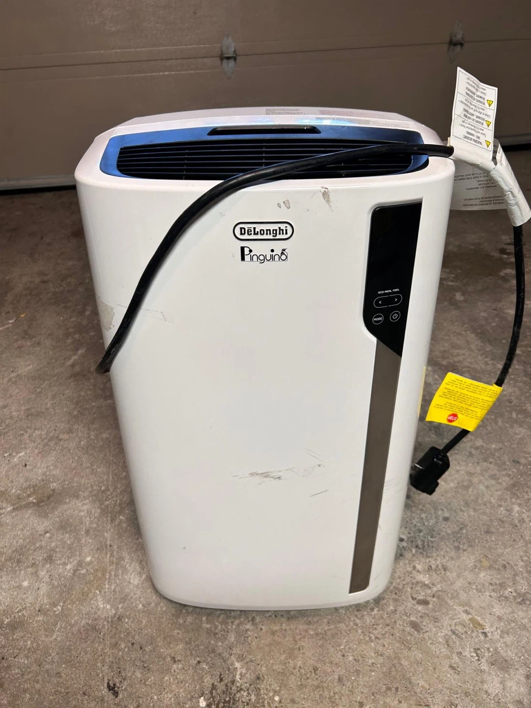 Selling a DeLonghi Pinguino portable air conditioner. AS IS. Working but missing remote and tube in the back which I’m sure can be replaced. Model: PAC EL375GRKC-3AL WH Type: PAC EL372HGRK It's a 3-in-1 unit!