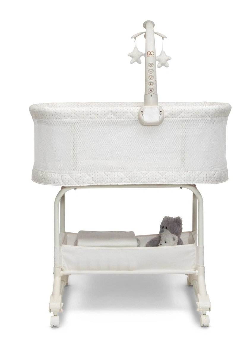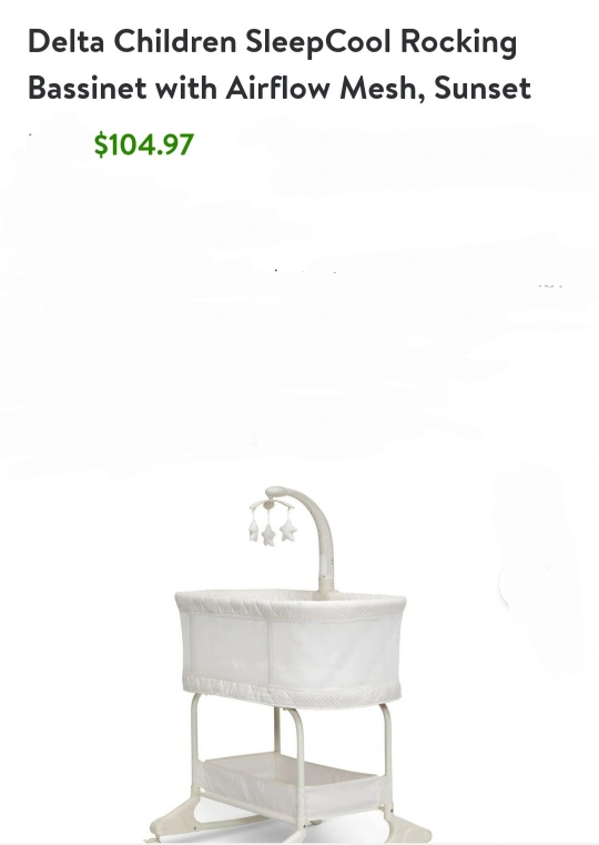 Check out this Delta Children SleepCool Rocking Bassinet in the Sunset colour! It features airflow mesh to keep your little one comfy. Originally bought for $104.97