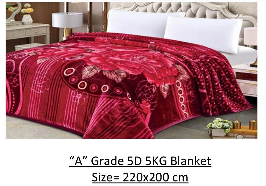 This is a soft and warm 'A' Grade blanket weighing 5 kilograms. It is beautifully designed in attractive and varied colors. The blanket measures 220x200 cm, making it highly suitable for keeping warm on cold winter nights.