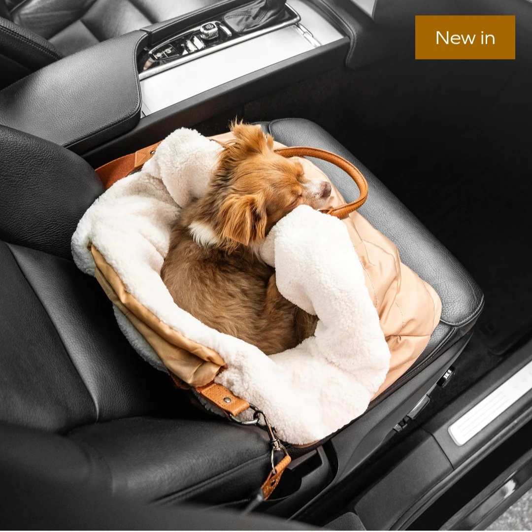 Deluxe Car Seat & Carrier, featuring a removable sherpa lining to pamper your pup on the way to any destination. Travel in style and comfort with this modern and stylish carrier that can be used as a deluxe car seat or carrier bag. Quilted Nylon Exterior Shell with Waterproof Interior Lining Removable Sherpa Lined Dog Bag with Comfortable Polyfill Bottom Adjustable Grosgrain Crossbody Strap– Max Length: 60” Adjustable Inner Leash – Length: 9” Faux Leather Handles Multi-use carrier (Carry handle, Cross body and in Vehicle) Grosgrain Stitched on Interior Bottom to Attach Shoulder Strap or Car Leash 12.6” Height X 11.8” Depth X 19.7” Width Maximum weight: 25 lbs.