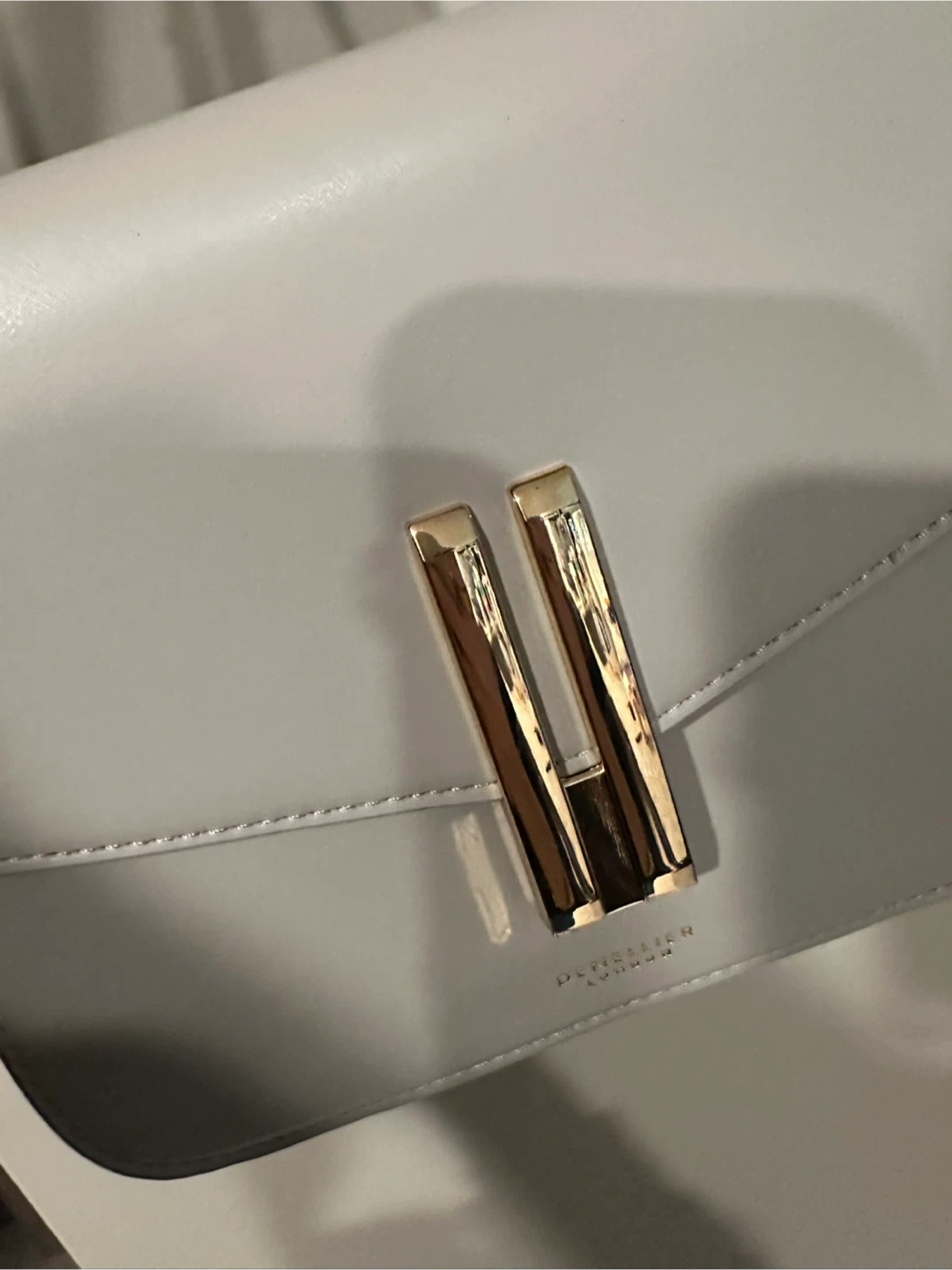 Selling a lovely DeMellier London shoulder bag. It's a beautiful grey leather, perfect for everyday use or a night out! The bag features a unique gold-tone clasp and is brand new. Purchased on market place, don’t have a receipt; cash only, pick up downtown only.