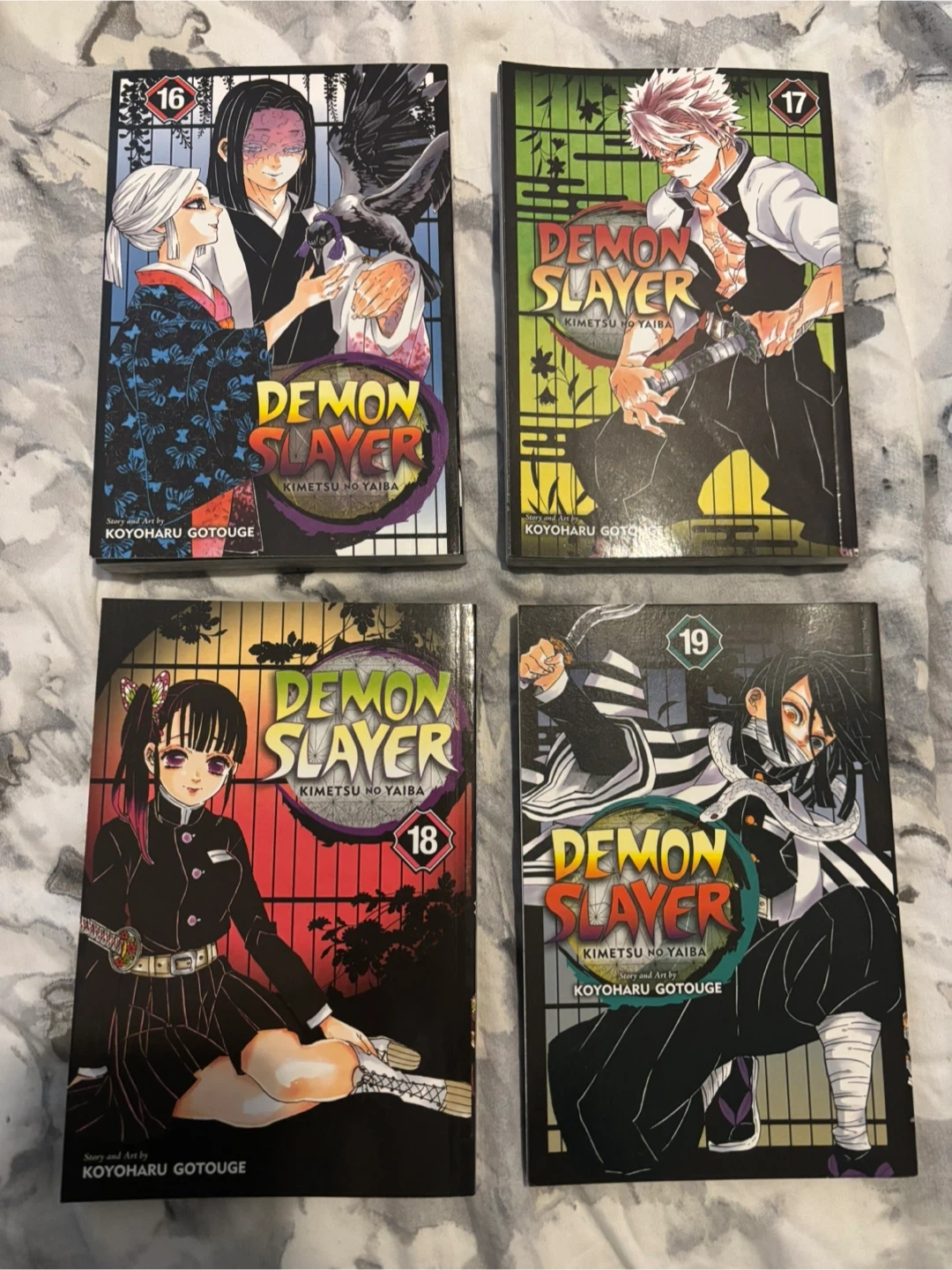 Selling a set of Demon Slayer manga volumes! This includes volumes 16, 17, 18, and 19. They're in great condition and ready for a new home