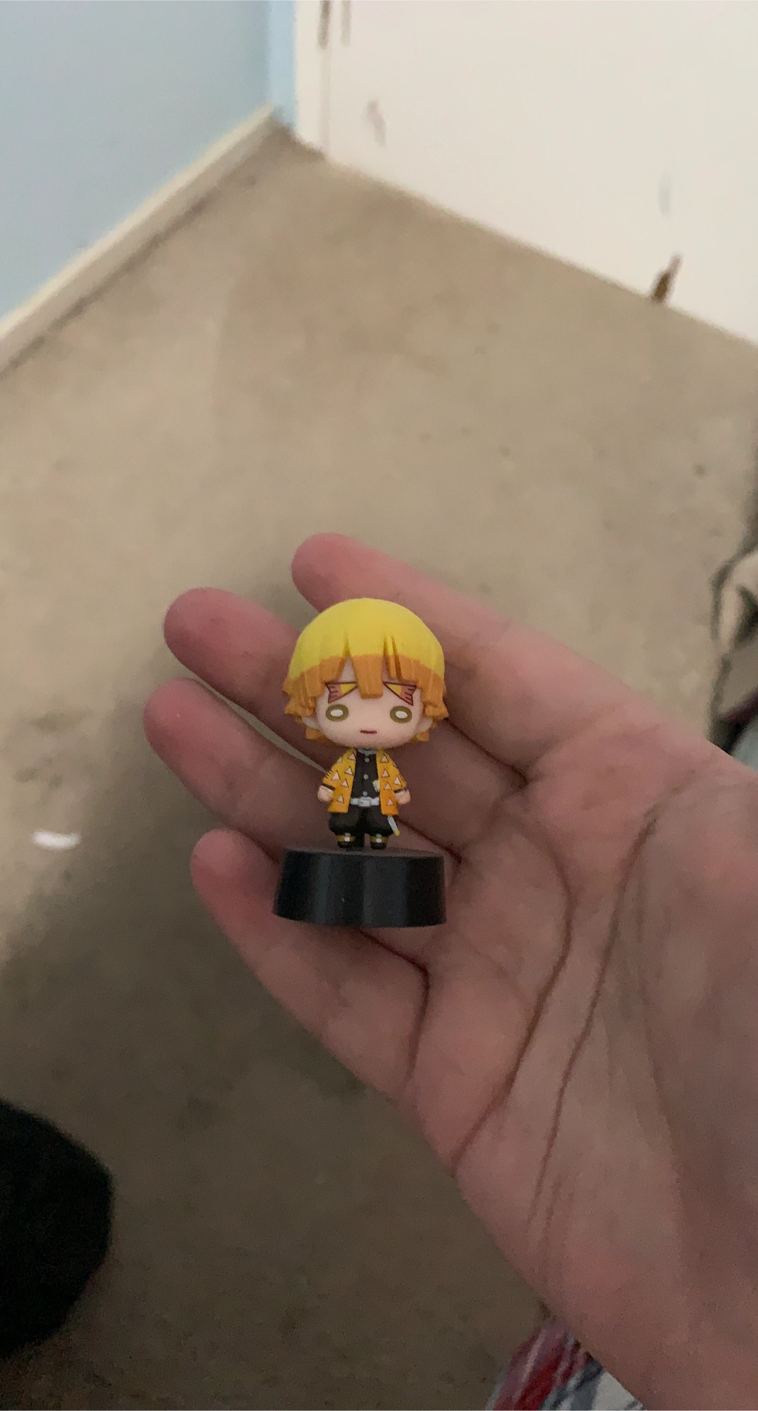 Here's a cute figurine of Zenitsu Agatsuma from Demon Slayer! It's in great condition and would look great on a desk or shelf