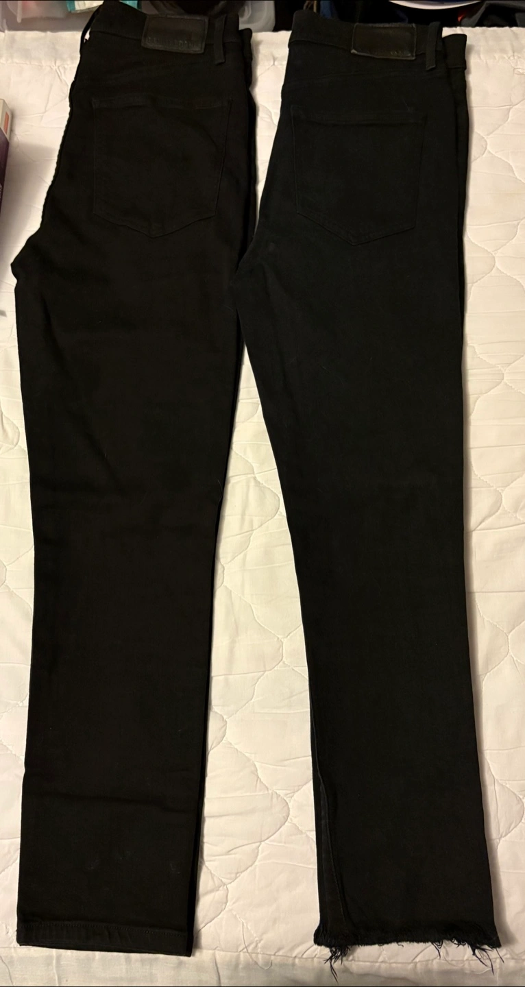 1st & 2nd photos - Lola High Rise Skinny. Black, Size 28. Raw hemmed pair has 23.5” inseam. The other pair has a 26” inseam. $40 each or both for $70. 3rd & 4th photos - Lola High Rise Skinny. Medium Blue. Size 28. Inseam is 26”. $40. 5th & 6th photos - Lola High Rise Skinny. Size 29. Lighter blue pair has a 27” inseam. Dark blue pair has a 26” inseam. $40 each or both for $70. 7th, 8th, & 9th photos - BF High Rise Loose. Size 29. Light Blue. Inseam is 28”. $40. 10th photo - Yoko Short. White. Size 29. $20. Prices in the description. Discount for multiple items purchased.