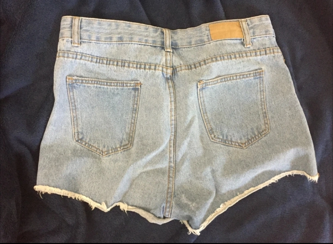 Selling a pair of light wash denim jean shorts. They're a size L and in great condition! Perfect for summer