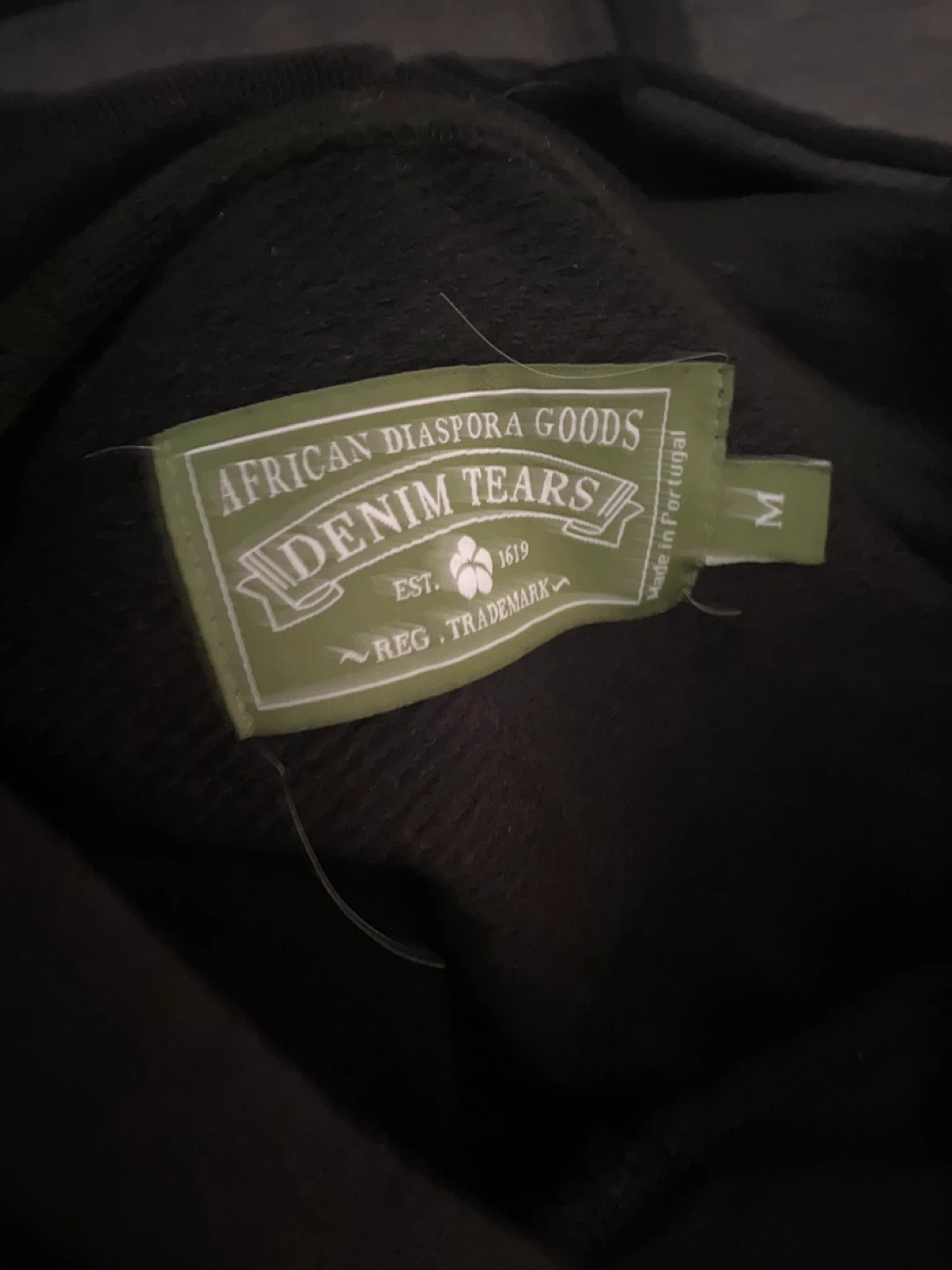 Selling a Denim Tears hoodie in size medium. It features a unique floral design and is made in Portugal. The hoodie is in good condition and ready for a new home. It also fits size small. serious offers Only. Minimum price is 175$