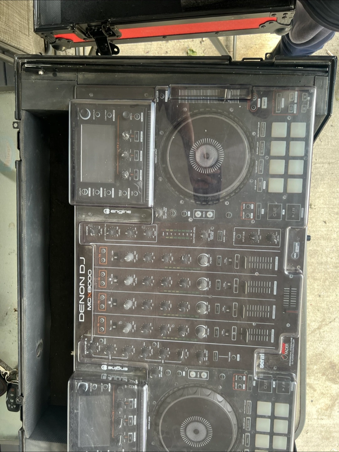 Selling a Denon DJ MCX8000 Professional DJ player/controller. It's a high-end professional standalone DJ player and controller, perfect for gigs or home setups. Lots of functionality packed into this unit! Comes Pro X performance hard case. No cords included. 4-CHANNEL STANDALONE DJ PLAYER & CONTROLLER • Powered by Denon DJ Engine standalone technology • Dual USB inputs for Engine playback (no laptop required) • Includes Serato DJ Pro software, with Serato DVS upgrade option • Dual high-definition displays for Engine and Serato visualization • Professional 4-channel digital mixer with 2 mic inputs • 3 onboard instant effects (echo, phaser, noise) for Engine and line inputs • Velocity-sensitive pads for cues, rolls, slicer, and samples • StagelinQ network for lighting and video control • Rugged all-metal construction STANDALONE PERFORMANCE The MCX8000 delivers full DJ control without a computer. Two HD screens display Engine Prime or Serato DJ Pro waveforms and library navigation. The 4-channel mixer integrates 3 effects for both USB and external line sources. Velocity-sensitive pads add dynamic creative options, while the solid build ensures reliability on stage. ENGINE PRIME INTEGRATION Engine Prime software powers laptop-free performance. Load your sets directly from USB drives and manage your entire library with playlist, crate, and cue point organization on PC/Mac. Engine Prime v2.1 firmware further enhances control with waveform beatgrid editing, mic/USB talkover, attenuation, and quantized beat-sync. SERATO DJ PRO READY Seamlessly switch between Engine standalone mode and Serato DJ Pro with 4-channel support. Serato’s DVS upgrade enables traditional vinyl/CDJ control. Practice Mode allows set preparation without hardware, ensuring DJs stay performance-ready. FLEXIBLE HAND-OFFS Two DJs can transition smoothly with no interruptions. Dual front USB ports handle flash drives, while a rear powered USB port supports external drives with Serato DJ Pro. Engine Prime’s dual USB playback also serves as a safety backup during computer issues. PROFESSIONAL SOUND & EFFECTS With 24-bit audio quality, balanced XLR outputs, and dedicated booth and PA routing, the MCX8000 delivers pristine sound. Built-in effects (echo, phaser, noise) enhance creativity, while two dedicated microphone channels give full control without sacrificing mixer faders. NEXT-GEN MEDIA PLAYER/CONTROLLER The MCX8000 is the first DJ controller/media player with onboard independent software that also integrates flawlessly with Serato DJ Pro. Combining standalone flexibility, Serato power, and advanced firmware features, it represents the next level in high-performance DJ hardware.
