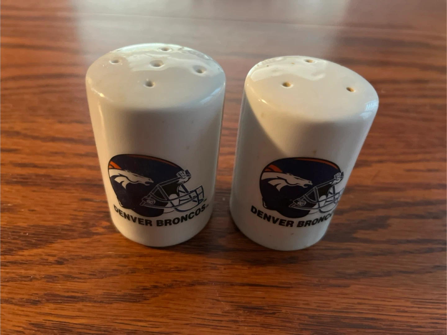 Spice up your kitchen with this set of Denver Broncos salt and pepper shakers! Perfect for any Broncos fan or collector. They're in great shape and ready to add some team spirit to your meals
