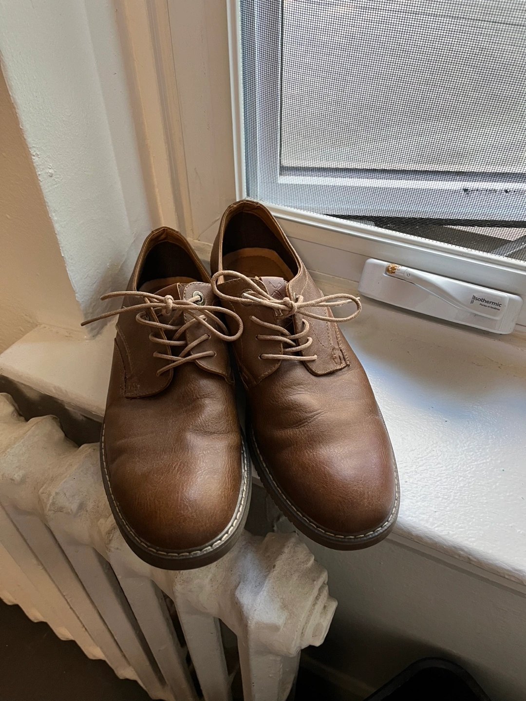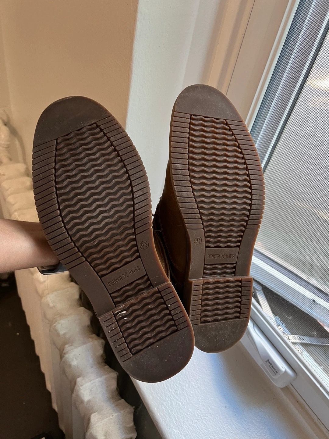 Selling a pair of Denver Hayes dress shoes in size 9.5. They're a nice brown colour and in good conditon