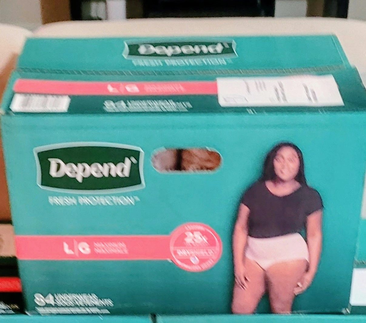 Selling a box of Depend Fresh Protection underwear in size Large. The box contains 84 underwear. Perfect for anyone looking for comfortable and reliable protection.