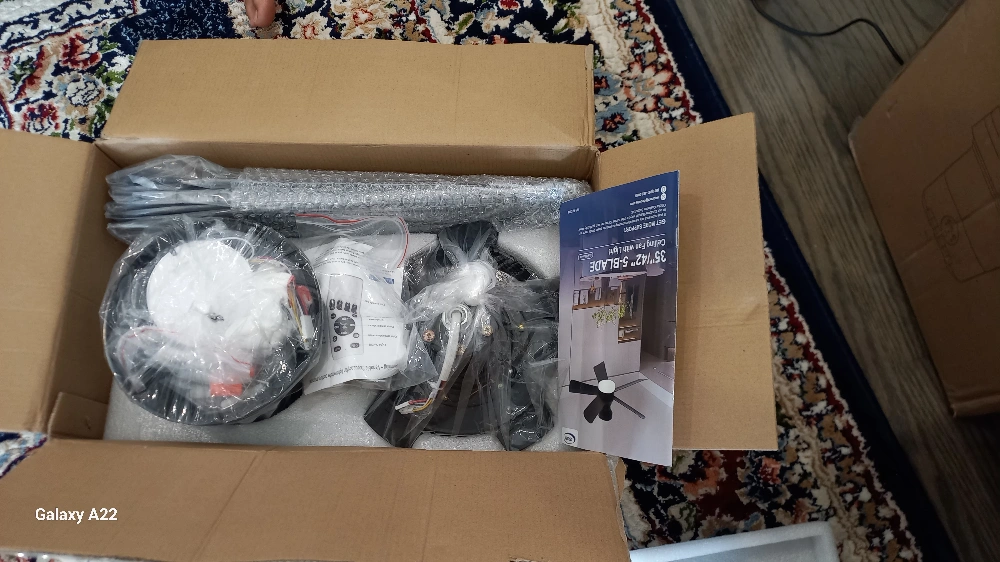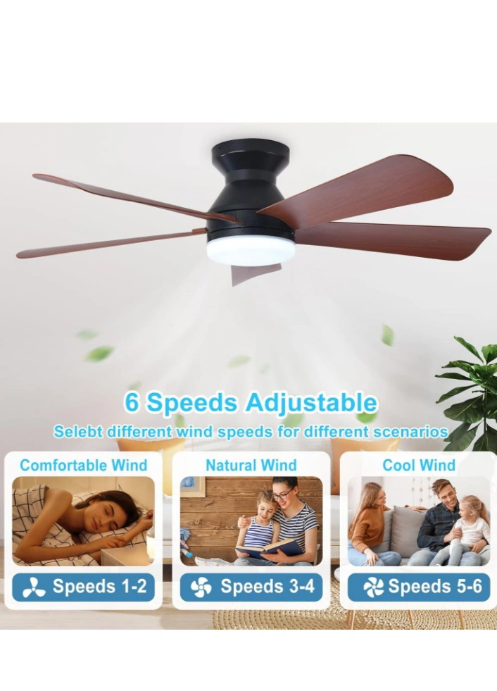 This DEPULEY 42-inch ceiling fan is perfect for any room! It comes with a remote for easy control, and it features a reversible function for both summer and winter use. The fan has 6 adjustable speeds and is made with ABS material fan blades. The product size is 42 inches in diameter. Box included