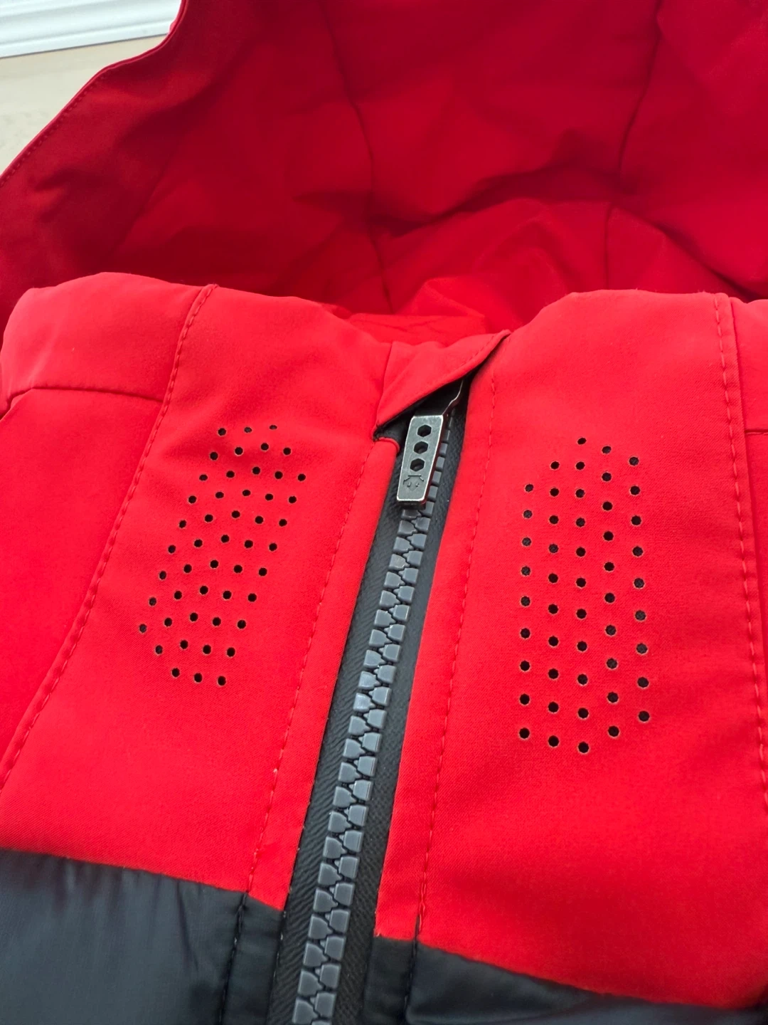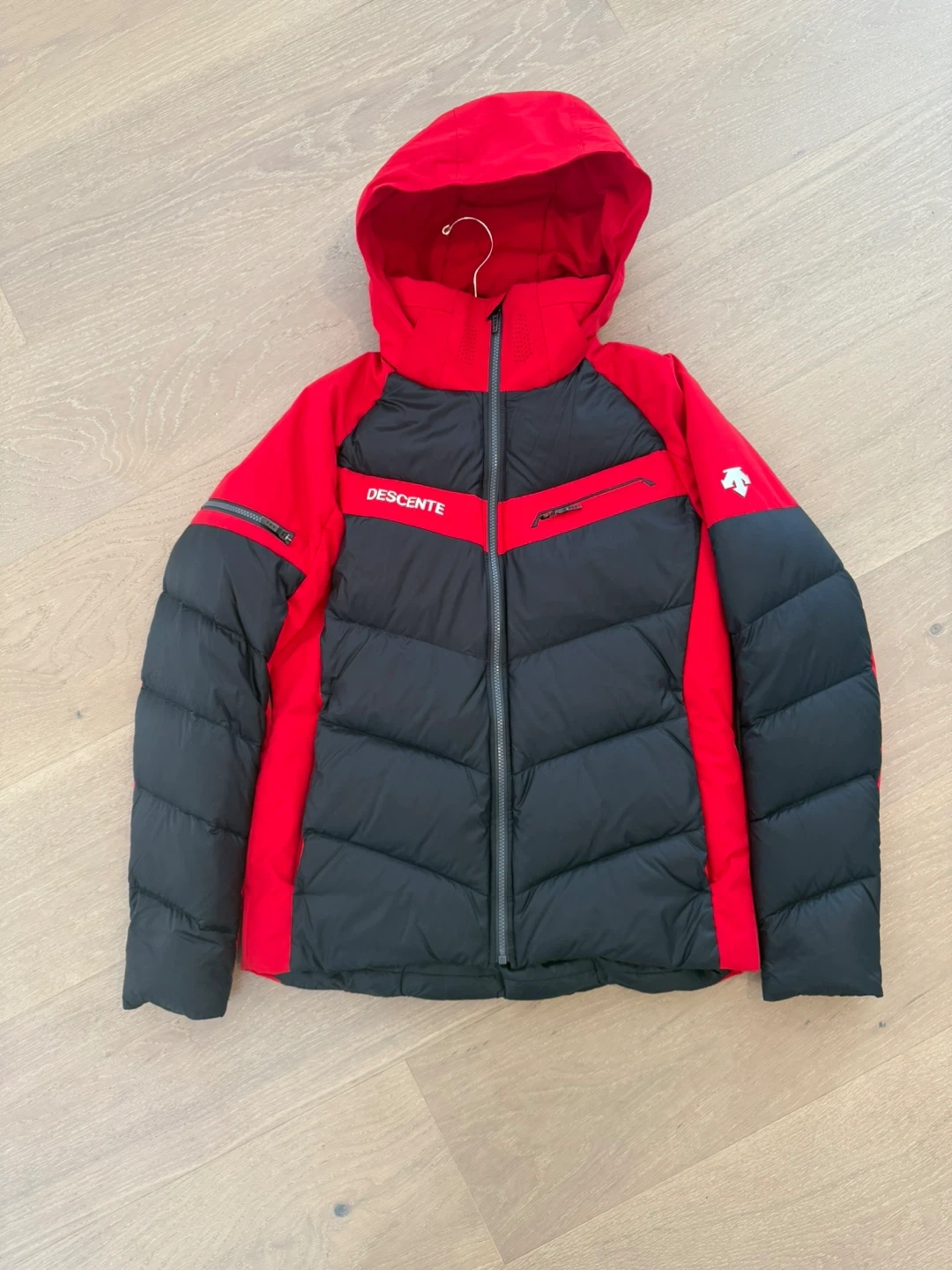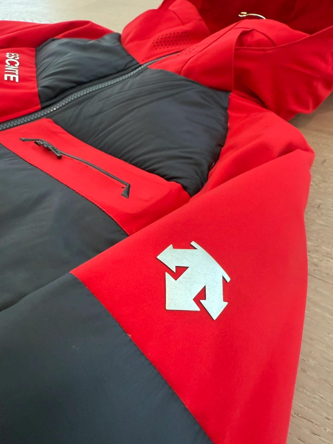 Selling Descente Barrett ski jacket in red and black, size L. I bought it from the Can-Ski store in Whistler. Worn only twice and always taken care of. Some of its features are: 20K waterproof / 20K breathable 4-way stretch fabric Heat Navi tech keeps you warm in cold temps 3M Thinsulate Chest vents, pit zips Waterproof zippers and lots of pockets, including sleeve and inside ones Removable Hood Down-proof construction so no insulation leaks Great jacket for skiing, or just staying warm in the cold.