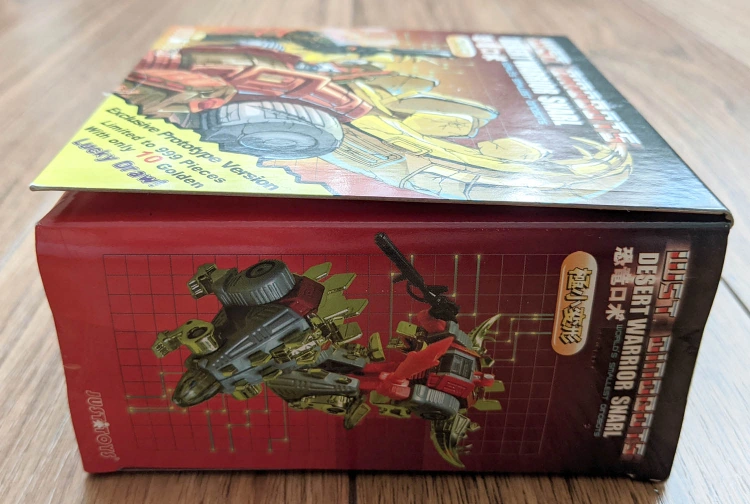 "Desert Warrior Snarl", exclusive prototype version, limited to 999 pieces. Released in 2006 by Justitoys, from their "World's Smallest Dinobots" line of transforming robots. Brand new in box. Sealed on all sides except for the lid which was opened in order to see the figure. Condition: Figure: 10/10 Box: 8-8.5/10 Window: 8-8.5/10 Dimensions (inches): 5.0 x 5.0 x 2.5 See pics. $60. Pick up in downtown Toronto (Richmond / Sherbourne area).