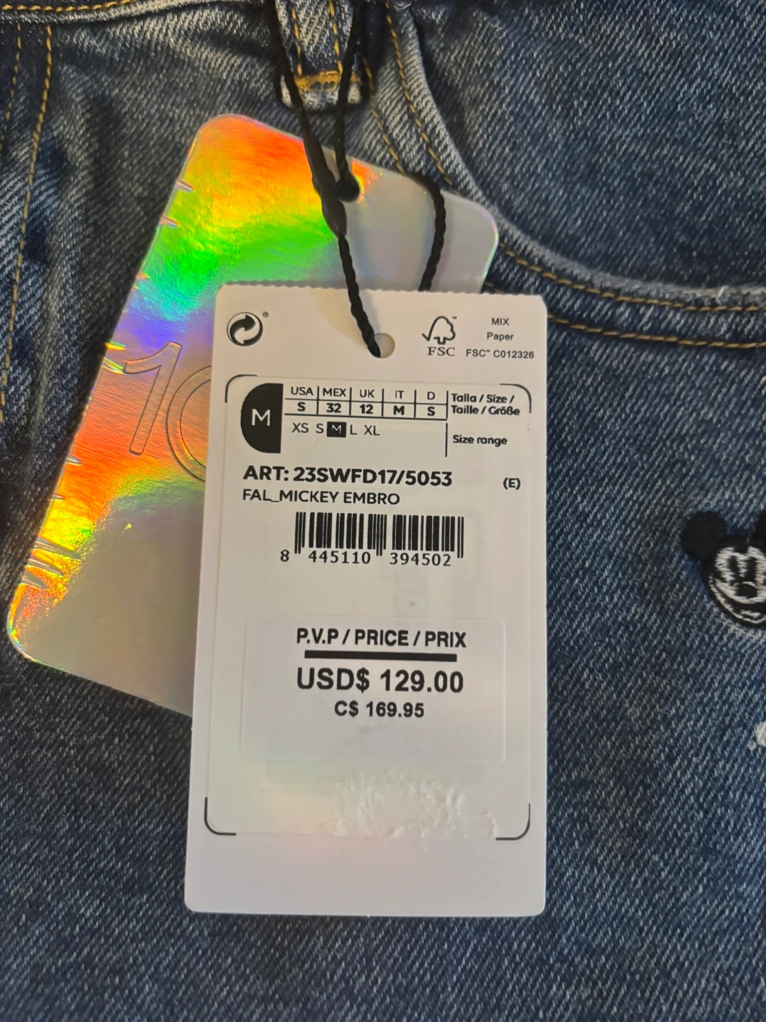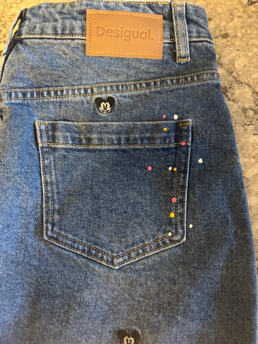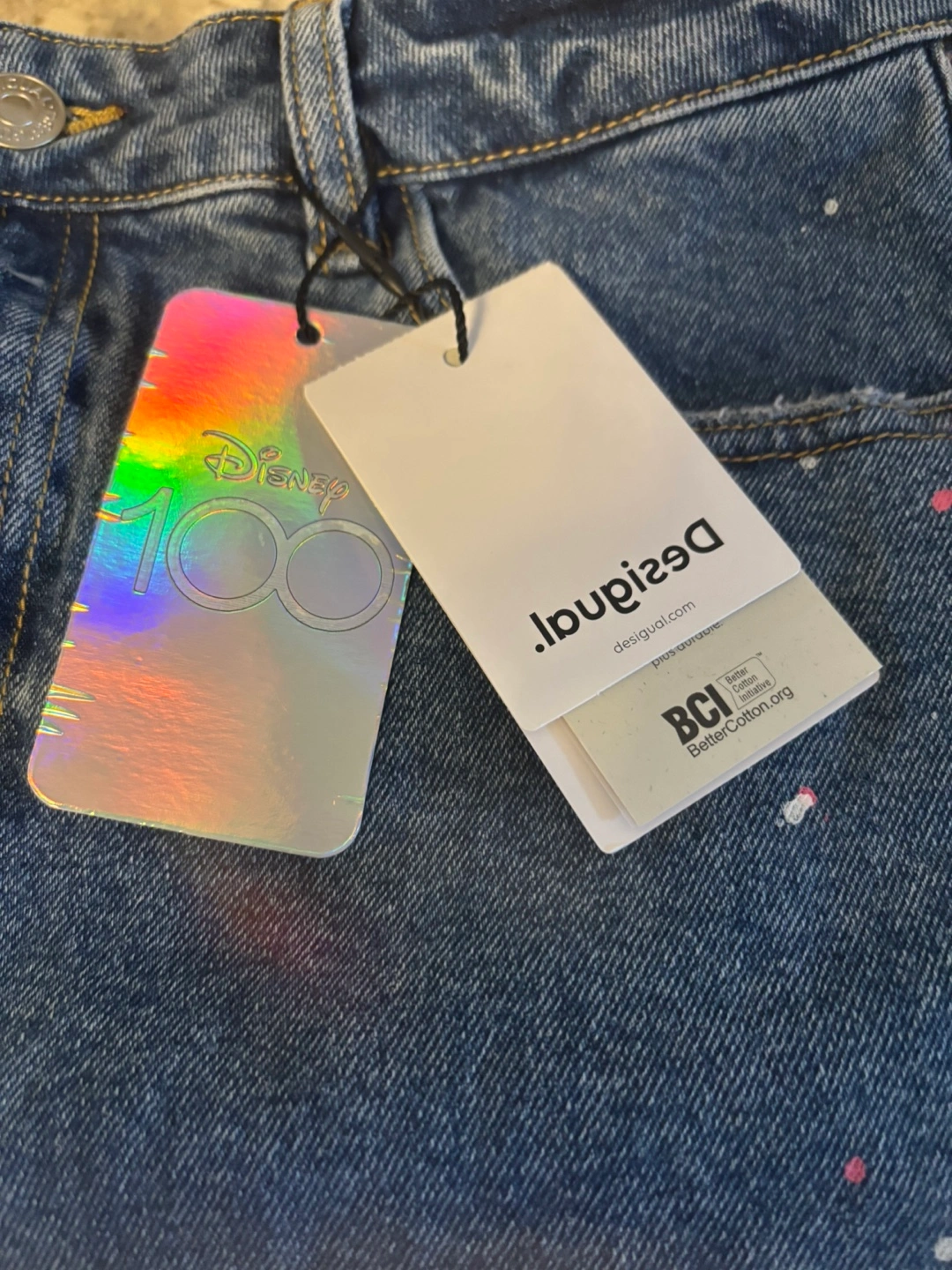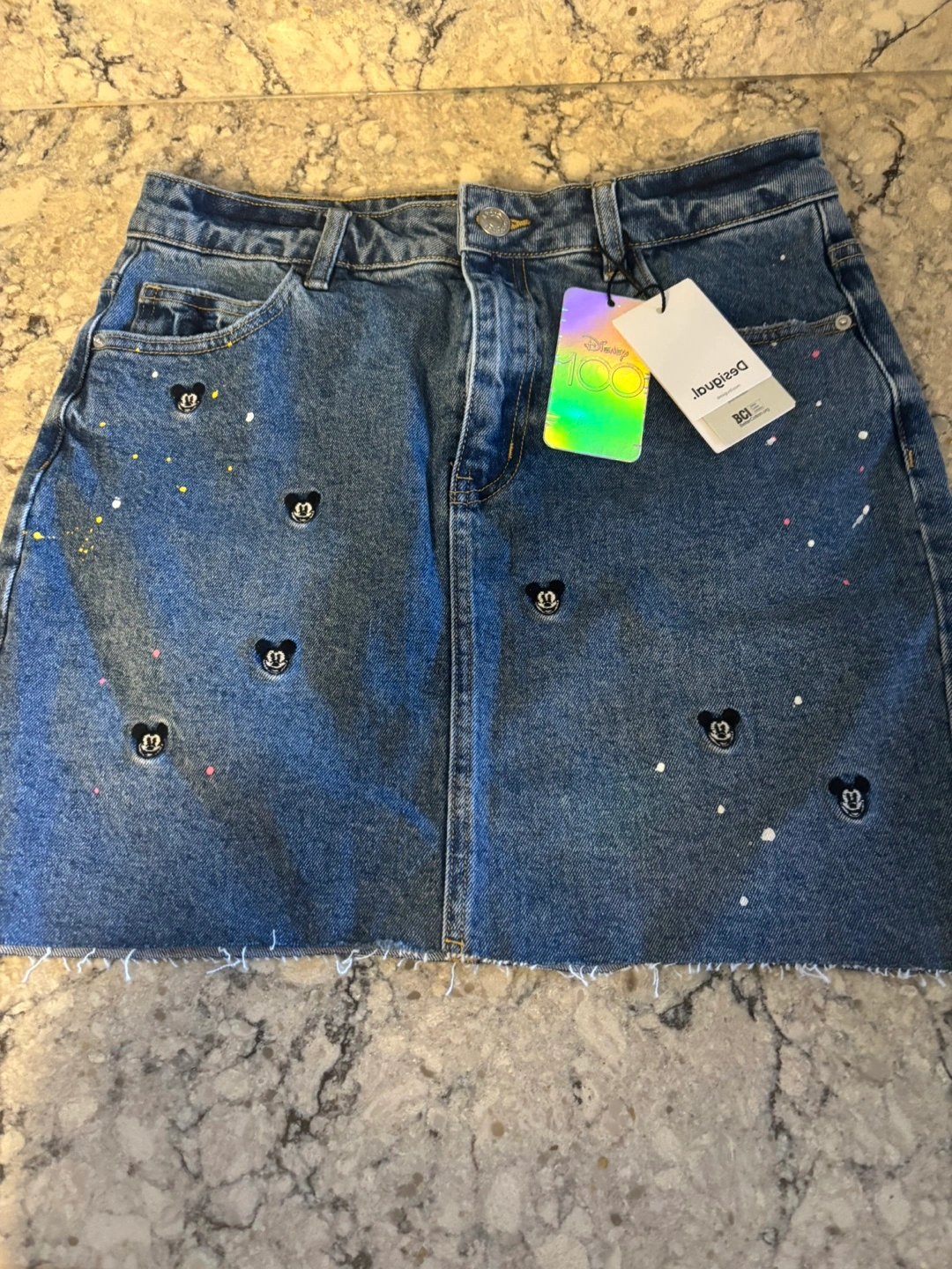 Cute Desigual denim skirt featuring Mickey Mouse embroidery and colourful. It's a size M and brand new with tags. The tag shows it originally retailed for C$169.95 Priced to sell!