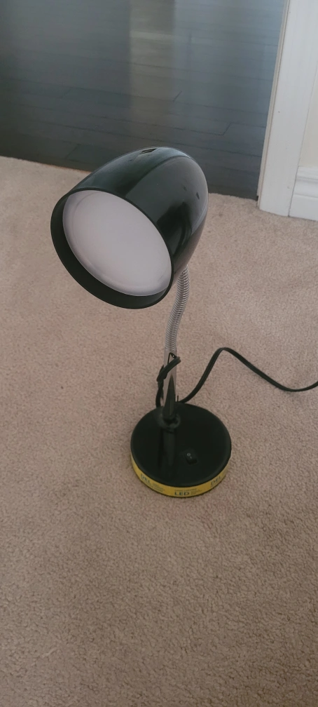 Selling a simple black desk lamp. It has a flexible gooseneck so you can adjust the light where you need it. Great lamp to light up home or office!