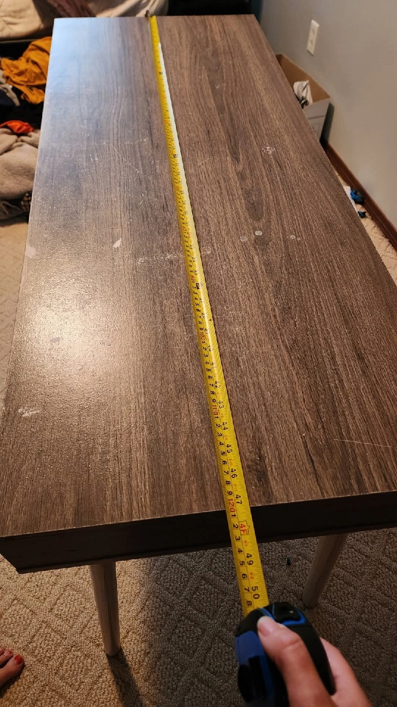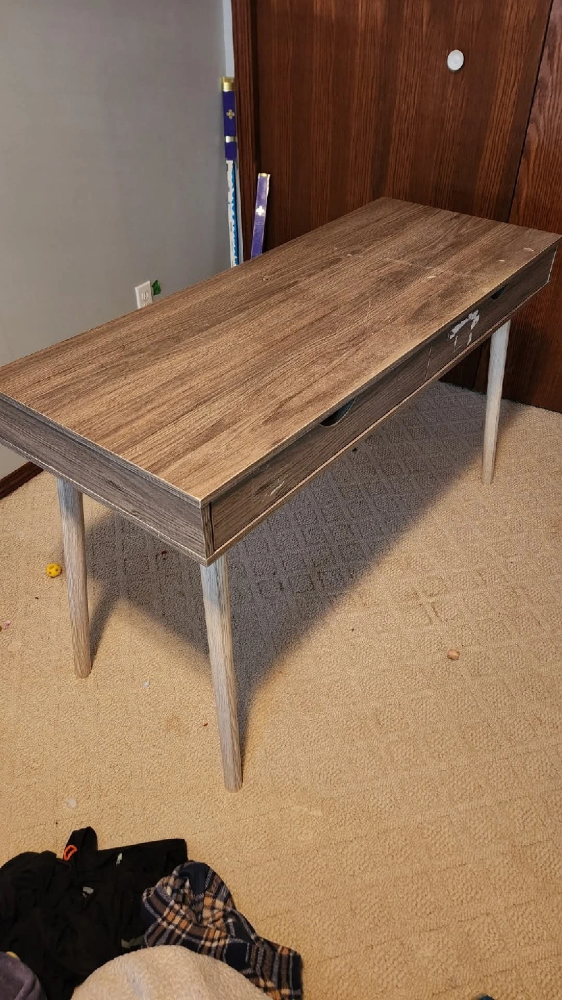 Selling a unique white wash student desk. Dimensions are approximately 50 inches long and 31 inches wide. Great for smaller spaces. There are some signs of wear, as shown in the photos, but it's still a sturdy and functional piece of furniture