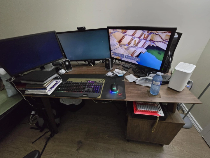 Selling a sturdy desk with built-in storage. It's perfect for a home office or study space. It has a nice, neutral colour that should fit in well with most decor. There's plenty of room for your computer and accessories, plus the added bonus of storage underneath to keep things tidy
