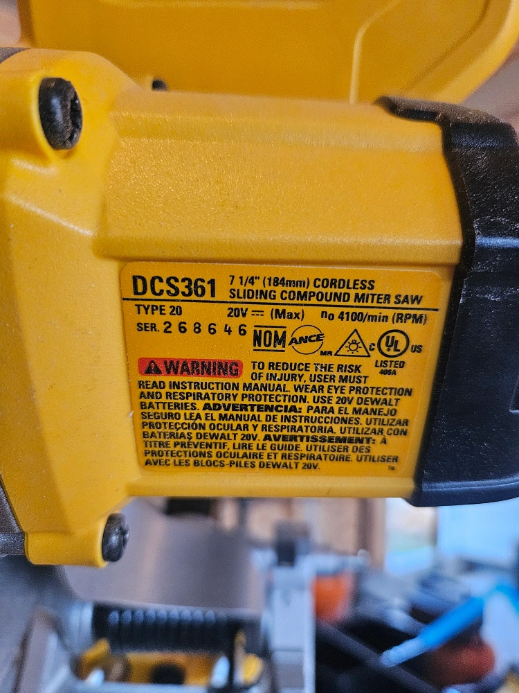 Selling a DeWalt 20V MAX compound miter saw. very lightly used and has original blade from factory. tool only.
