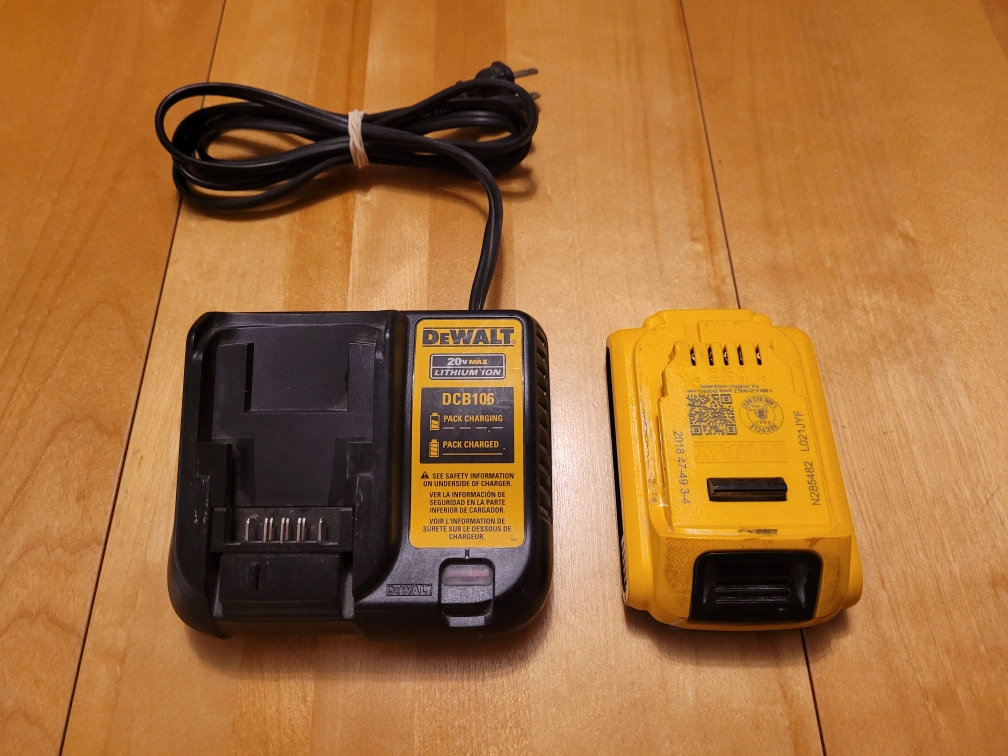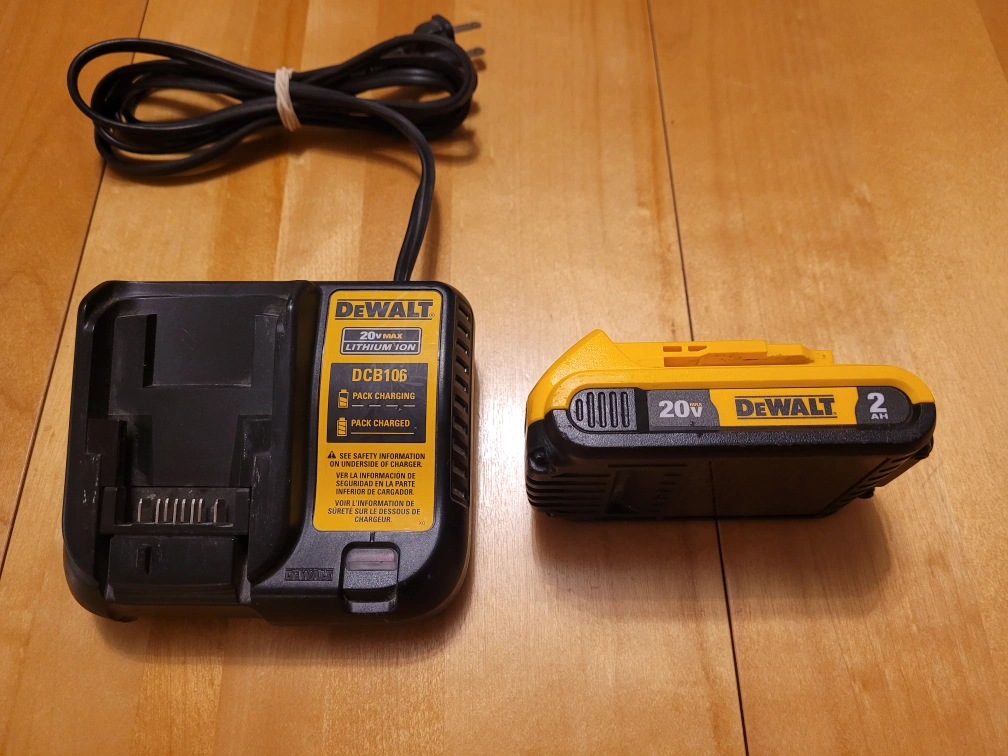 Great condition. Battery has rarely been used other than for a few days on an Oscillating tool. - Charger is the DCB106 Universal model -Battery is a 2ah 20V Max. Can deliver at no charge within city limits otherwise pickup is in Downtown Hull