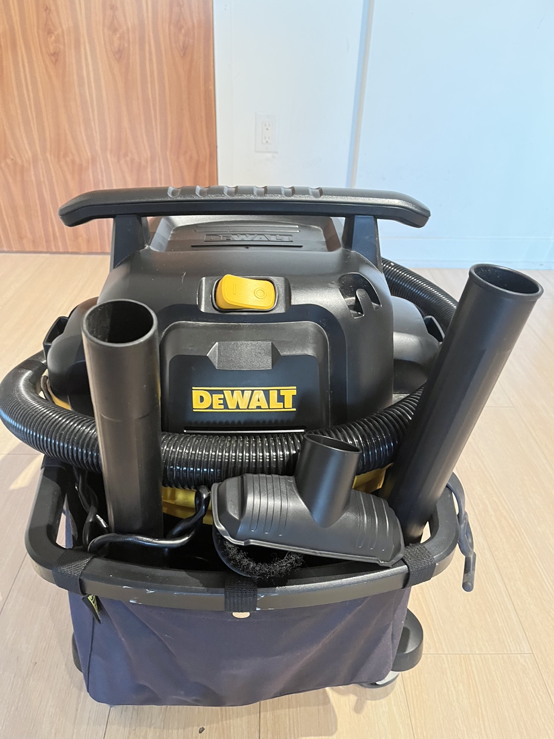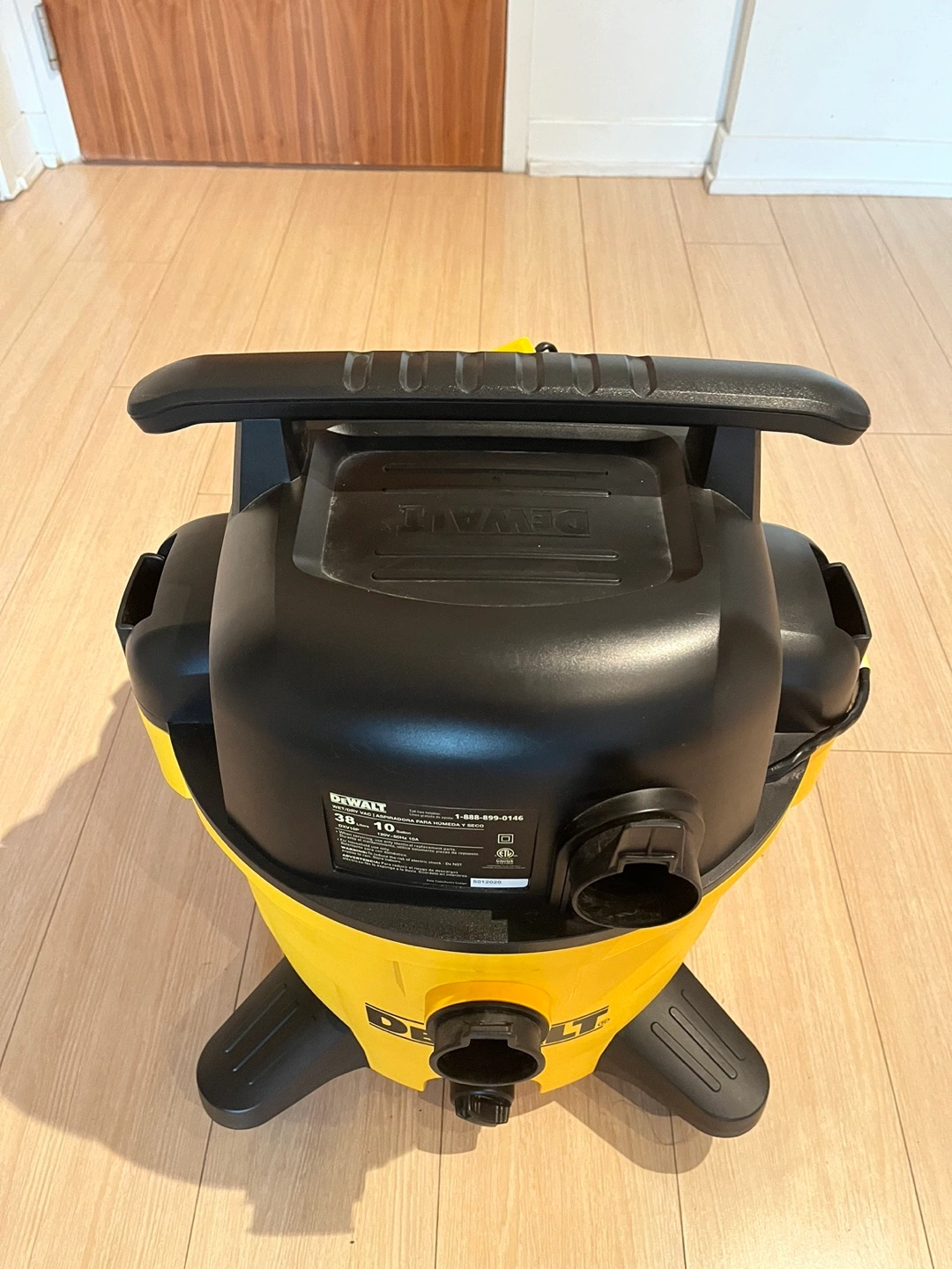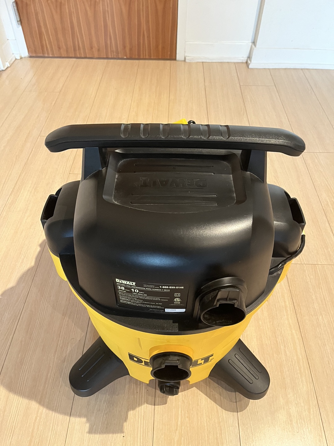- Sturdy 10 gallon dual-stage wet/dry Vac has quieter operation for clean-up applications. - Tool Length-19.9 inch - Powerful 5.5 peak horsepower motor provides just the amount of suction needed to most any cleanup job - Ultra durable rubberized casters allow smooth swiveling for ease of movement - Extra long, 20' Power cord with cord wrap helps reach almost any cleanup need - Built-in blower port powerful enough to blow Sawdust and debris from most any workshop - Built-in accessory storage bag conveniently attached to the backside of the vac to keep all accessories neatly organized - Large built-in tank drain makes it easy to remove liquids picked up