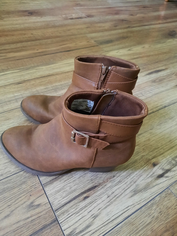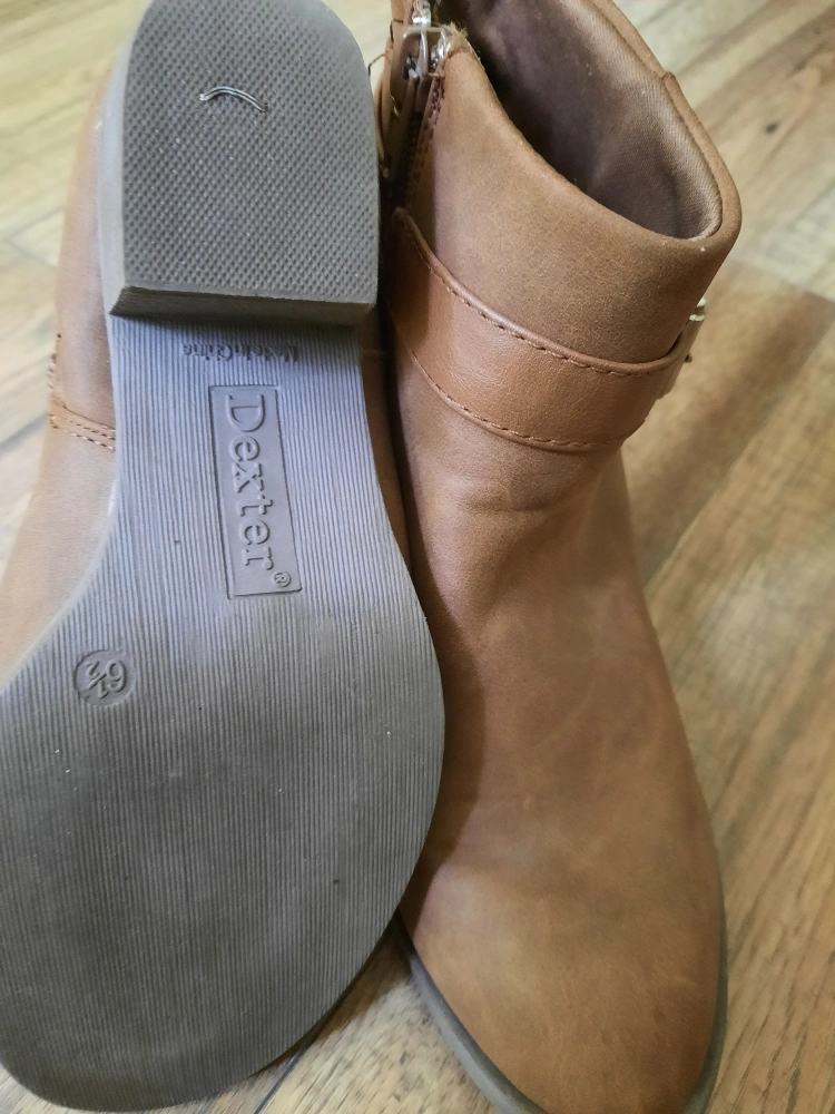 Selling a pair of Dexter ankle boots in a lovely brown colour! They are a women's size 6.5 These boots feature a stylish buckle detail and a comfortable heel height for everyday wear. Perfect for adding a touch of style to any outfit!