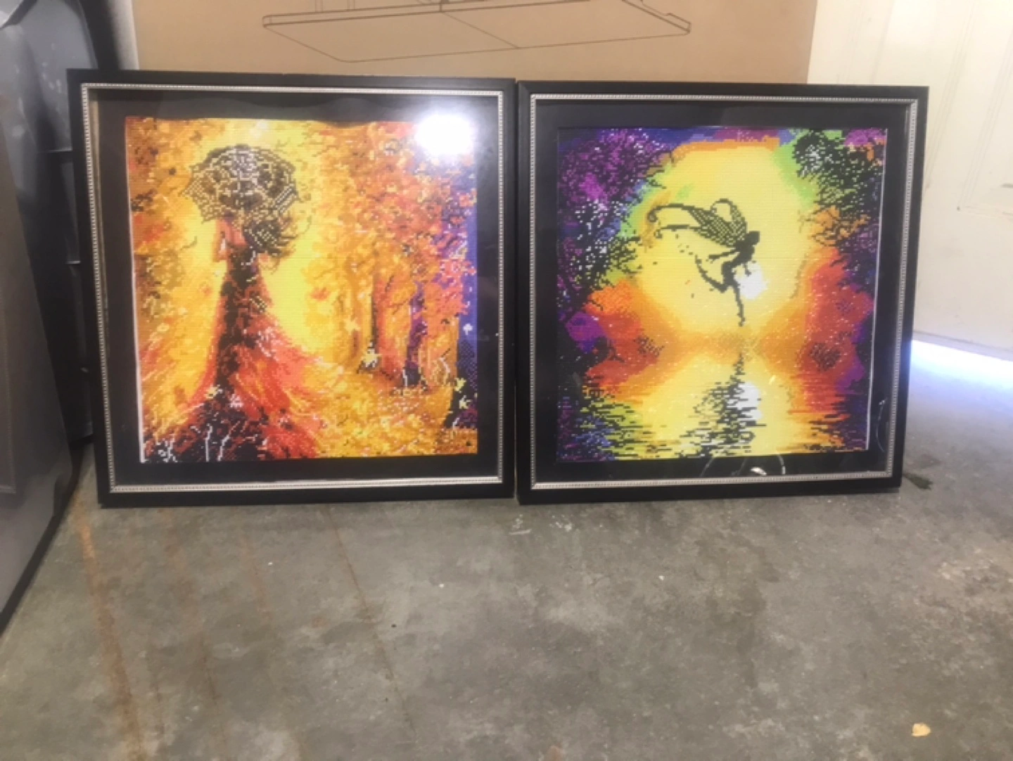 Selling a set of two framed diamond art paintings. They're in great condition and ready to add a bit of sparkle to your home! Measurements 19”X 19” No holds FCFS Cash and pickup only Need it be taken out of frames and relayed.