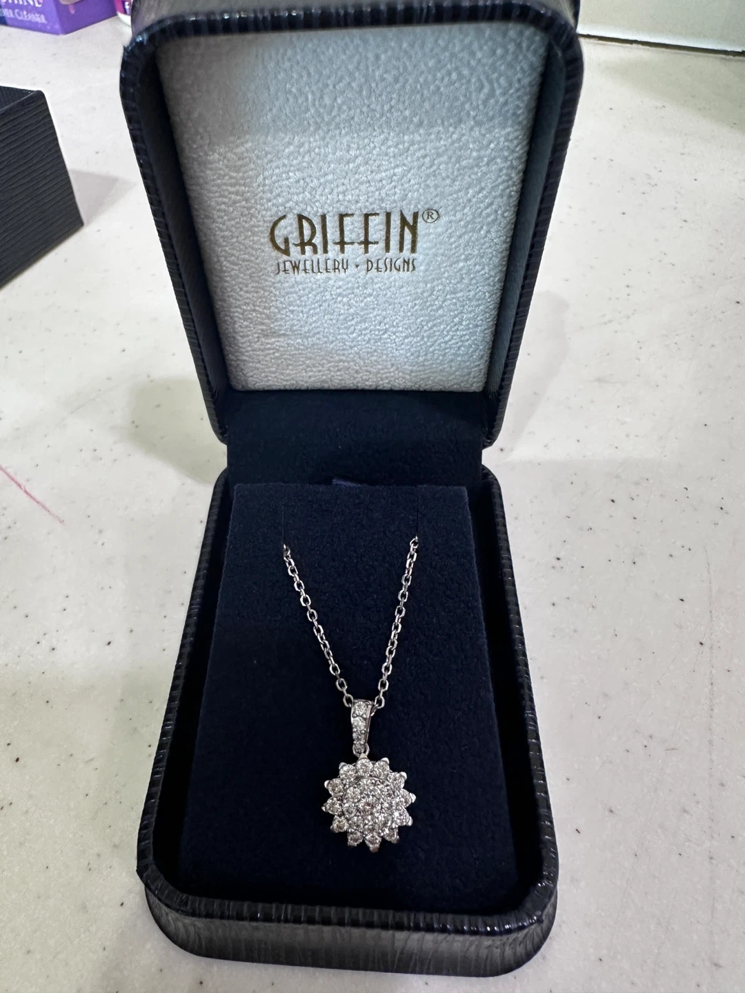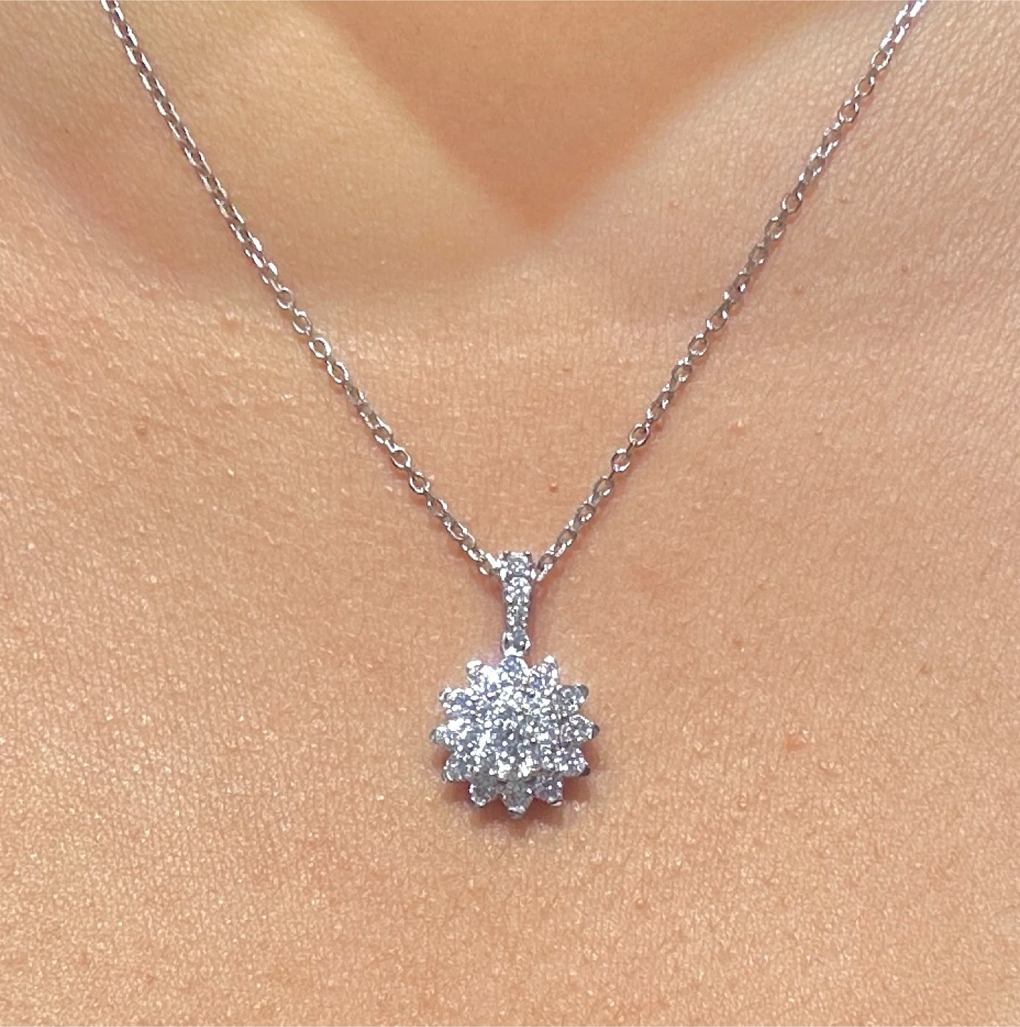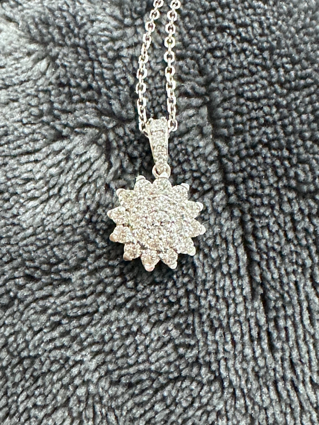 14k White Gold Diamond Pendant – 0.75ct total. Natural diamonds in a cluster design. Excellent condition. bought for $1200