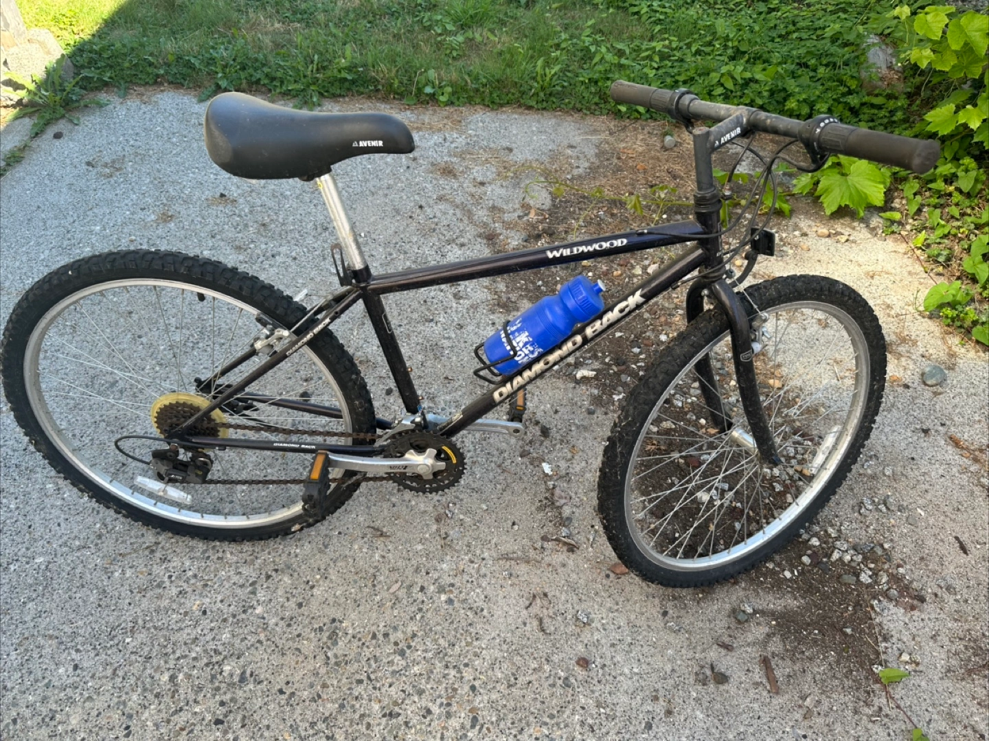 Selling a Diamondback Wildwood mountain bike. It's in good condition and ready for some off-road adventures! Great for trails or around town. Selling a Diamond Back Wildwood mountain bike. Color is a nice metallic galaxy shade. Comes with water bottle holder. 16” frame, good for riders ~5 feet to 5’4” depending on leg length. Bought here during Covid, and just don’t use it much. Don’t know a lot about bikes, but seems to be in good working order. Open to reasonable offers. Pickup near Poirier Tennis Courts.