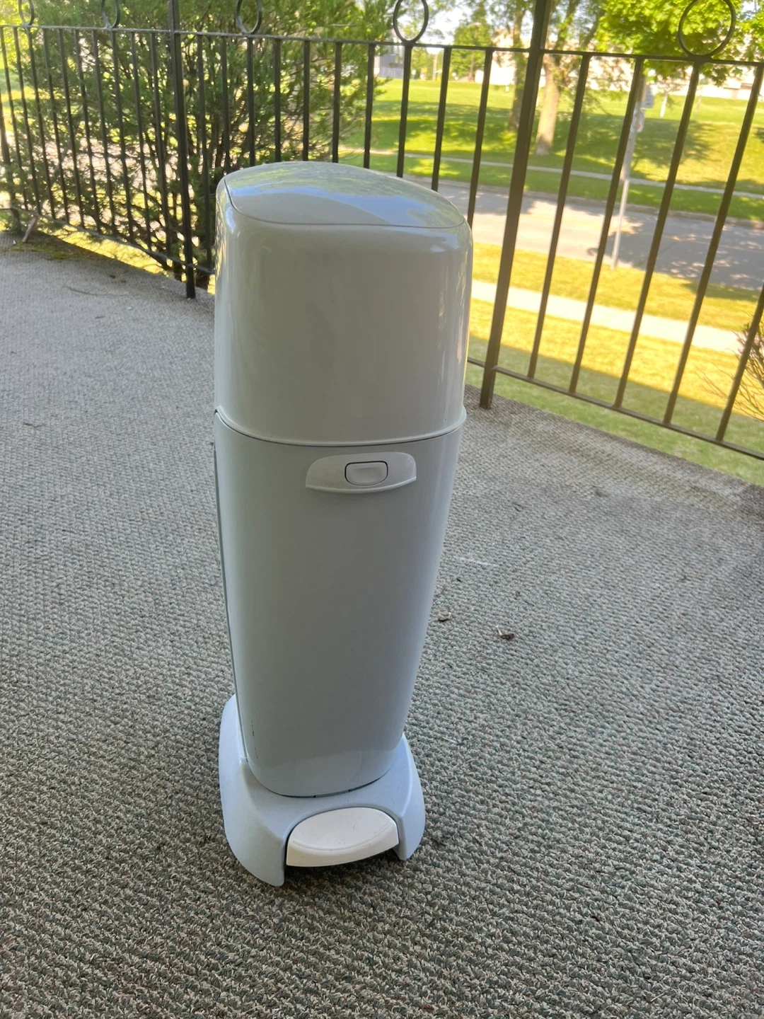 This is still selling in stores for more than 70 dollars. My is almost brand new, in gray color. just need to buy the diaper pail refills. This is very useful in the household with baby diapers around.