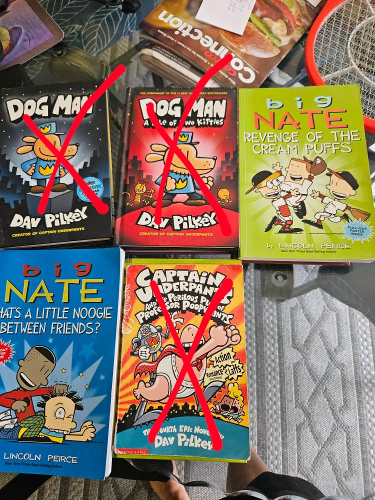 Selling a collection of Diary of a Wimpy Kid and Big Nate books! Great reads for kids and young adults. books marked with x have been sold. price listed is per book.