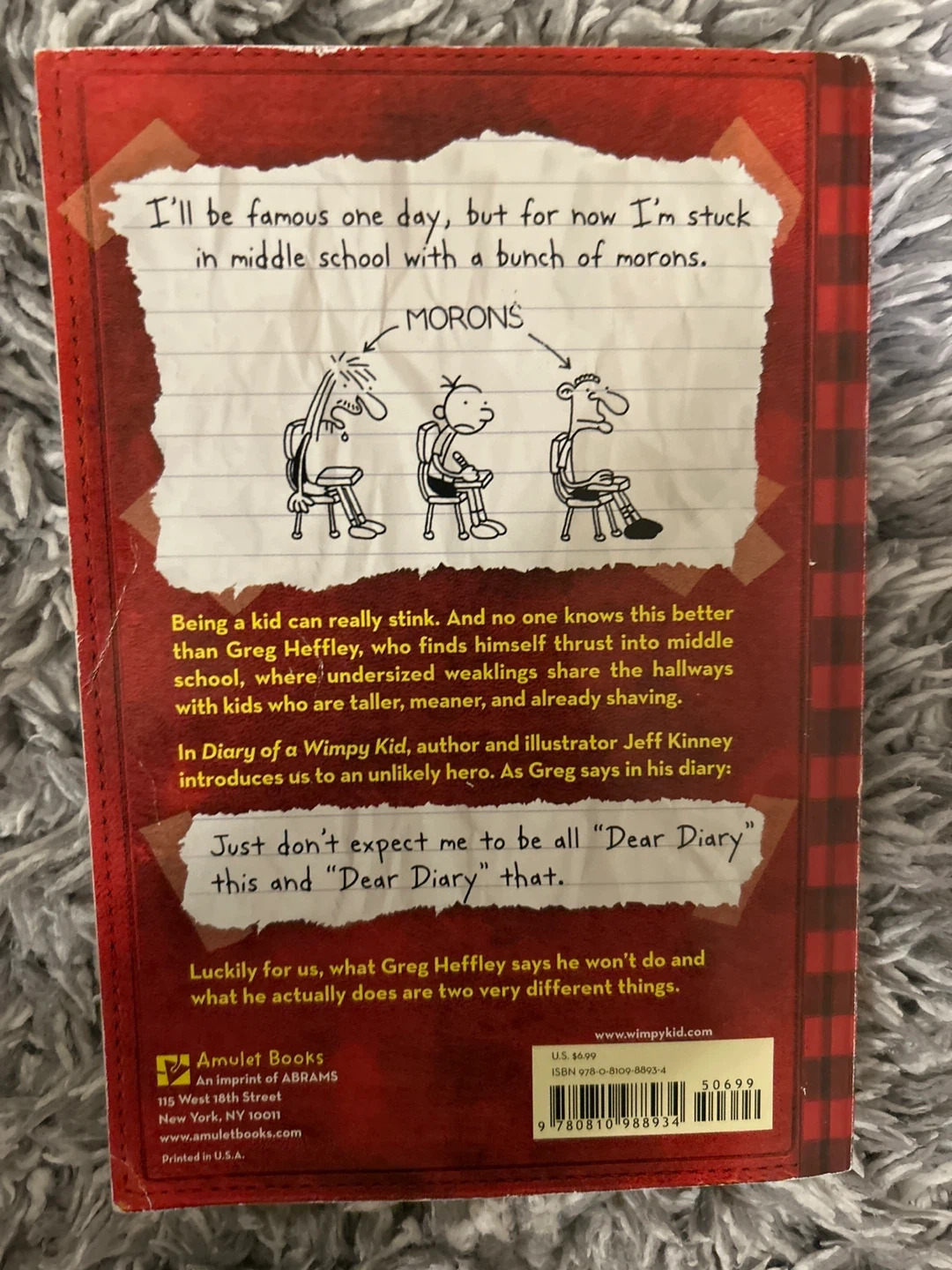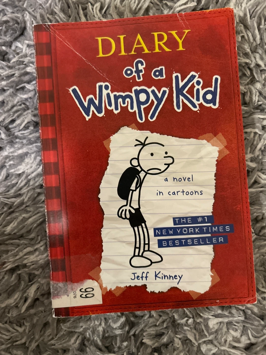 Selling a copy of Diary of a Wimpy Kid, a novel in cartoons by Jeff Kinney! It's the #1 New York Times Bestseller and a fun read for all ages