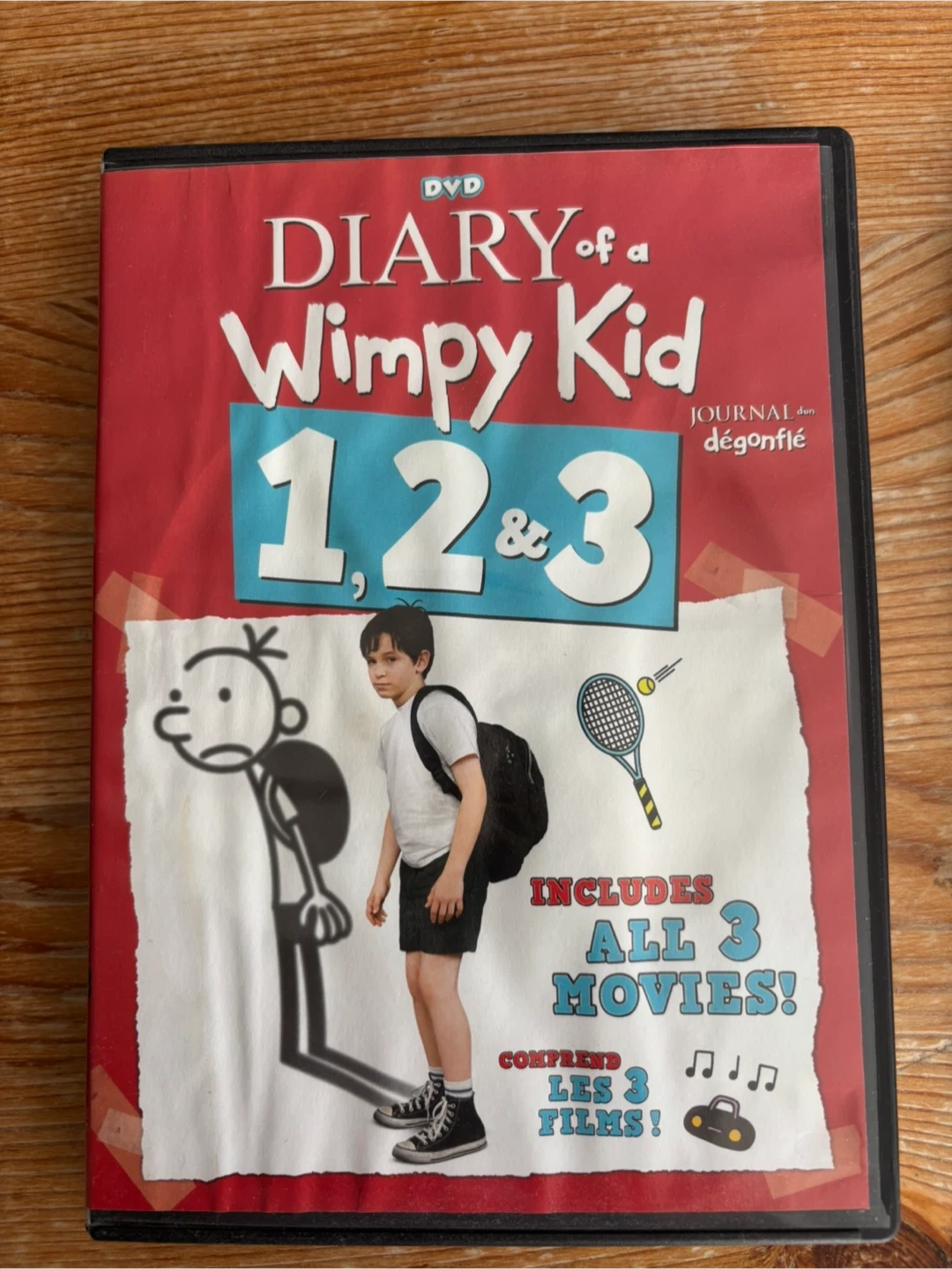 Selling the DVD "Diary of a Wimpy Kid 1, 2 & 3"! Includes all 3 movies, perfect for a family movie night or a fan of the series