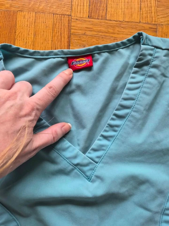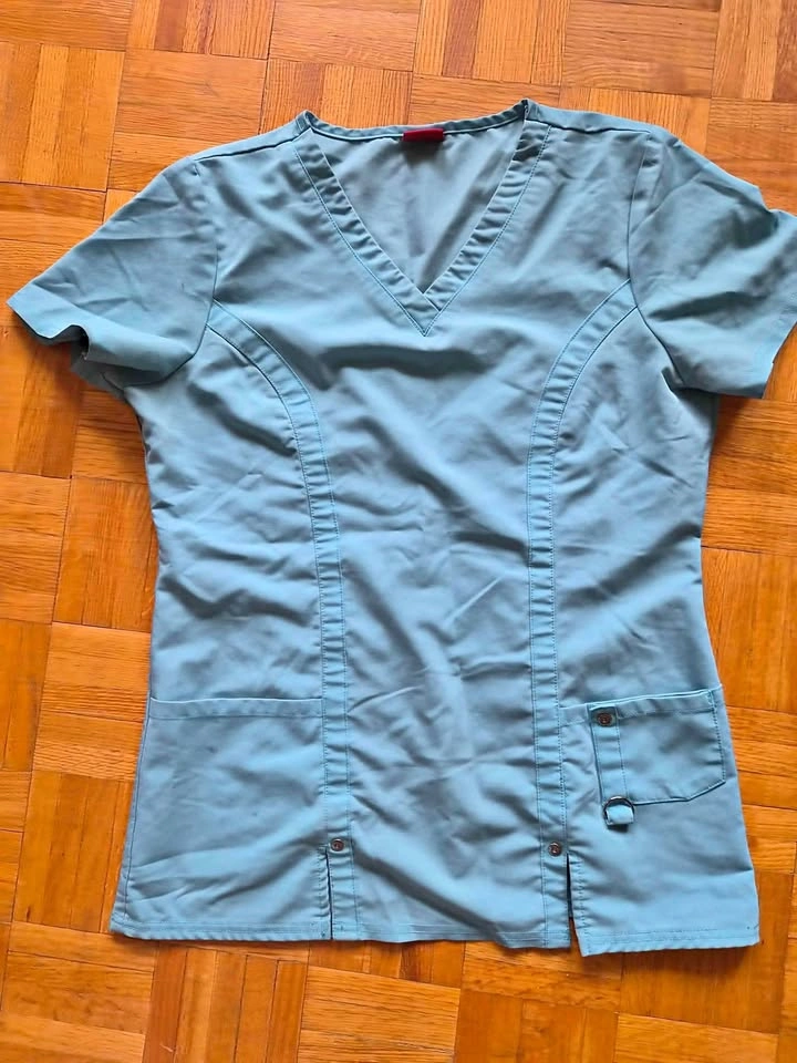 Size SMALL junior fit V-neck top features decorative logo eyelets, front patch pockets, and a cell phone pocket includes a self-tab with a utility ring. Scrubs work great for nurses, psw, pet groomers, other occupational work. Washed and ready for pick up. Must pickup as I do not have a vehicle. Pick up locationnis 57 union st east in waterloo.