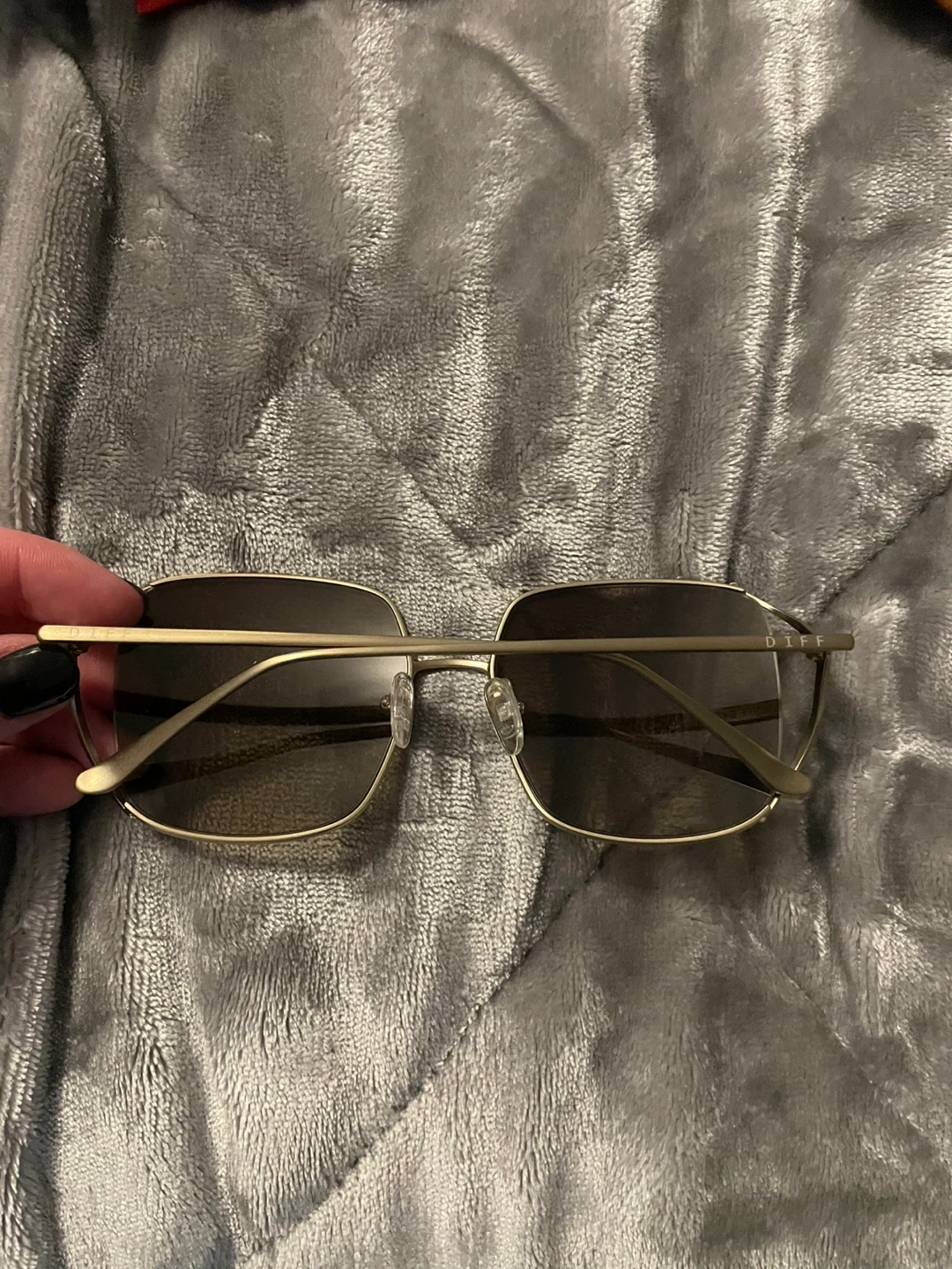 These are DIFF Eyewear sunglasses in a stylish gold colour! The model number is BG-BG117 and the size is 56-16-140. They're in great condition and ready for a new owner