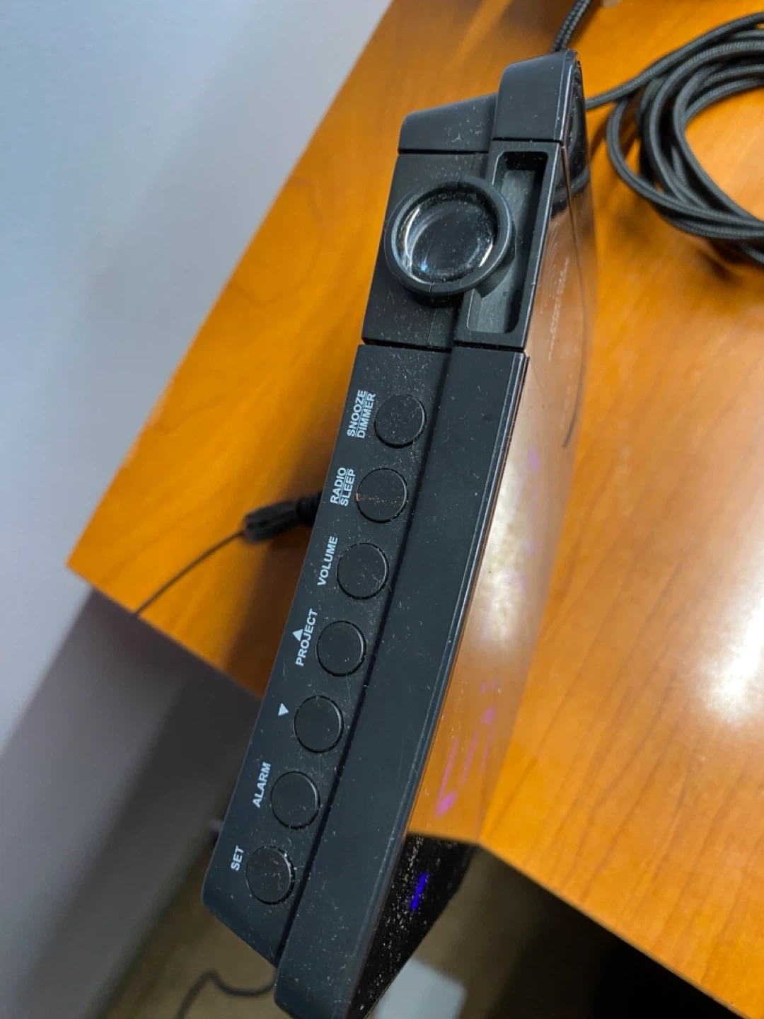 Enhance your daily routine with the FM Projection Clock Radio, featuring a large 1.8" digital blue display. This innovative clock not only provides accurate timekeeping but also projects the time on your ceiling, allowing you to conveniently check the time without even getting out of bed. With adjustable display brightness, you can customize it to suit your preferences, whether it's a dimly lit bedroom or a well-lit living room. Wake up refreshed by setting your alarm to your favorite radio station or peacefully drift off to sleep with soothing tunes. Experience a new level of convenience and functionality with this versatile clock radio. FM Clock Radio Large 1.8" Digital Blue Display Projects Time on Ceiling Adjustable Display Brightness Sleep / Wake to Radio Battery Backup