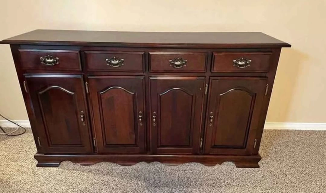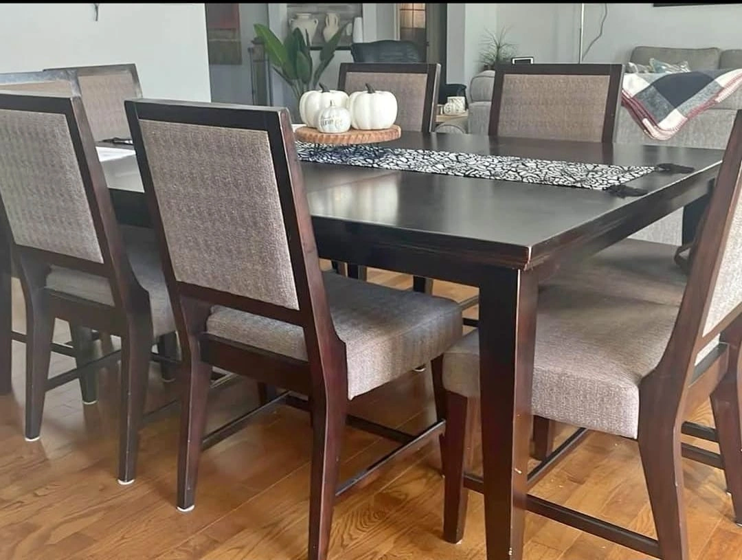 Selling a complete dining room set! This includes a table with chairs and a buffet. The set is in good condition and ready for a new home. Perfect for family dinners or entertaining guests!