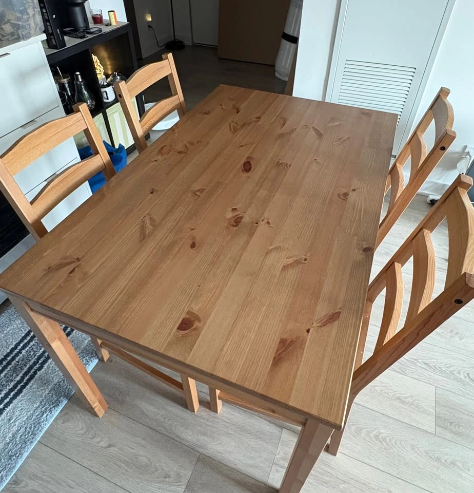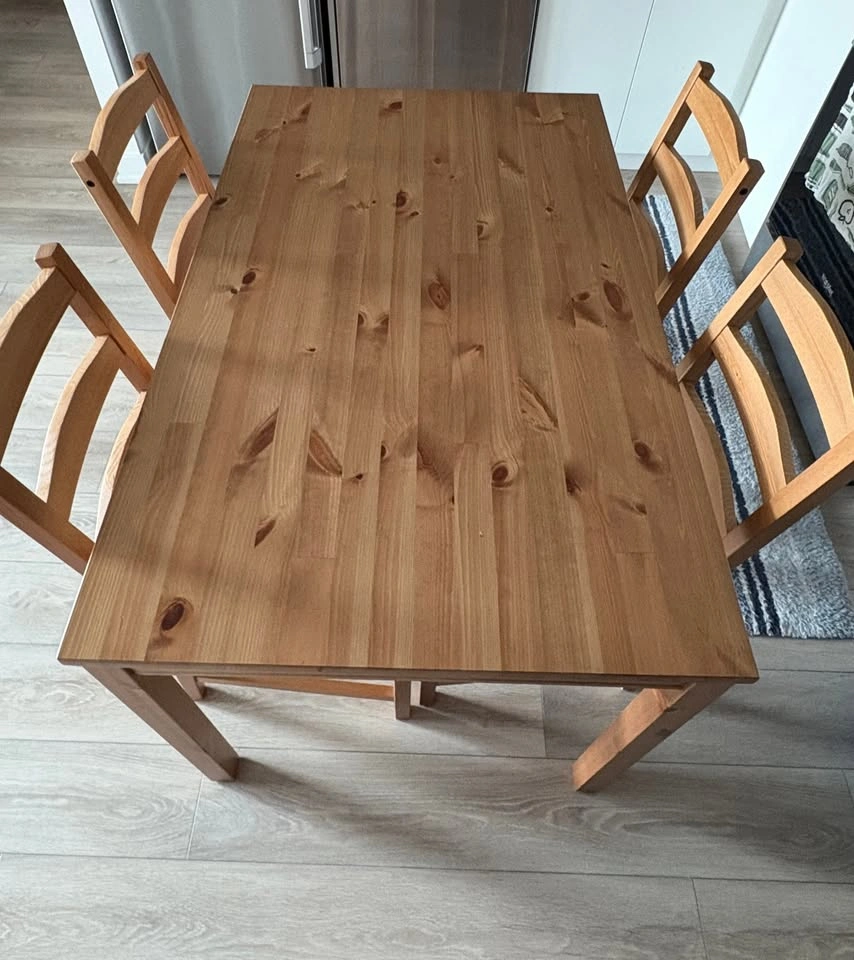 Mint condition dining table for sale. The table is only 6 months - built and ready to go. Needs to go before 30th August. NO SCRATCHES OR DENTS. Feel free to take a look before buying. Dimensions are attached in the last two photos.