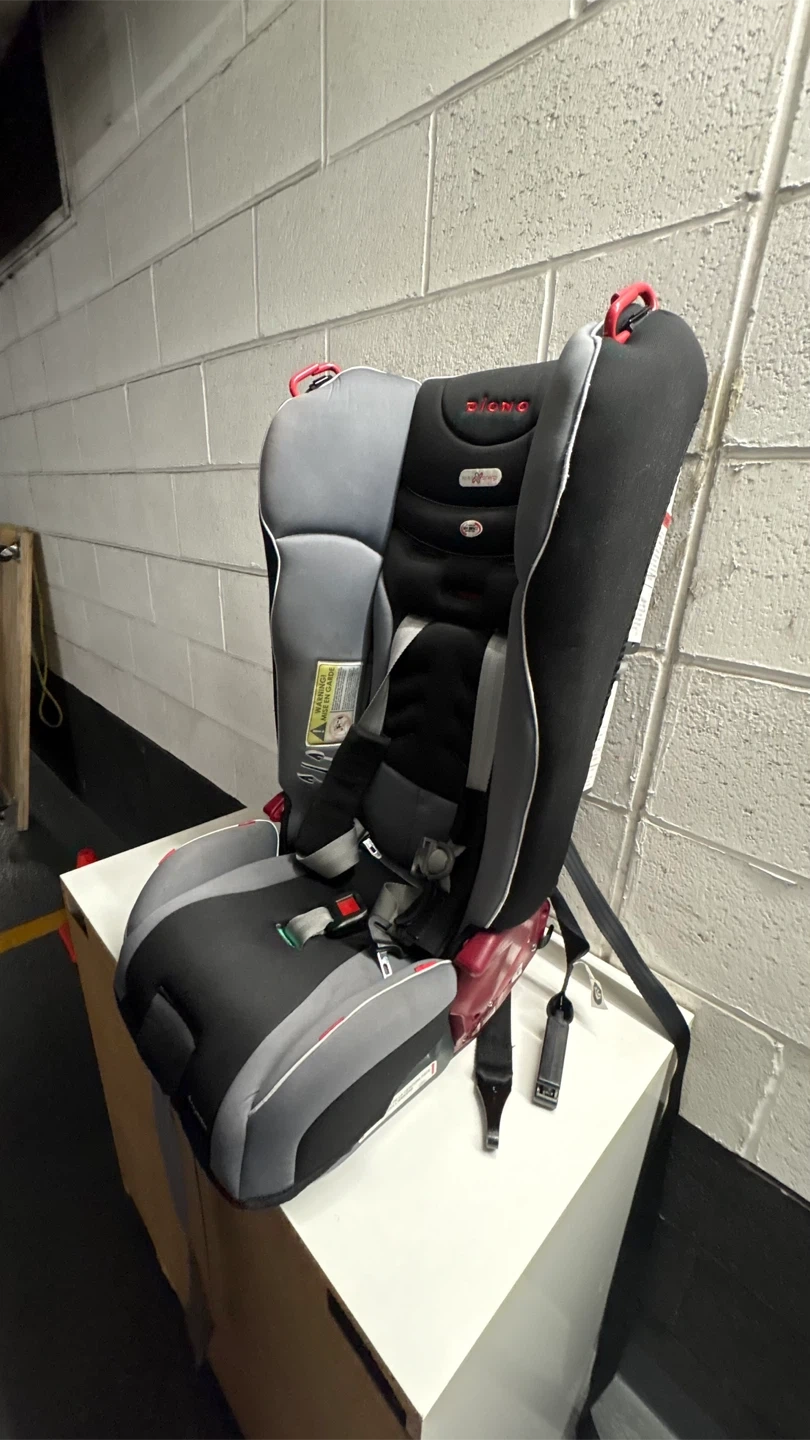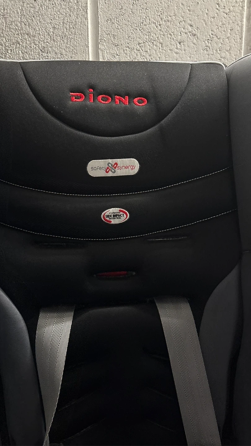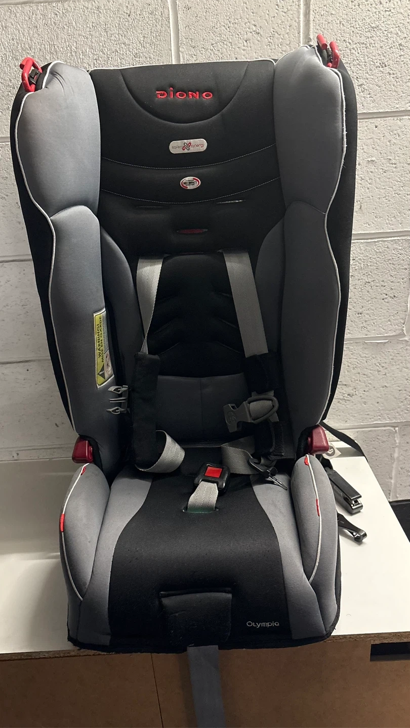 Selling a Diono Olympia convertible car seat! It's in great shape and ready for a new home. This car seat offers excellent safety and comfort for your little one. It has a black and grey design with red accents. Perfect for keeping your child secure on all your adventures