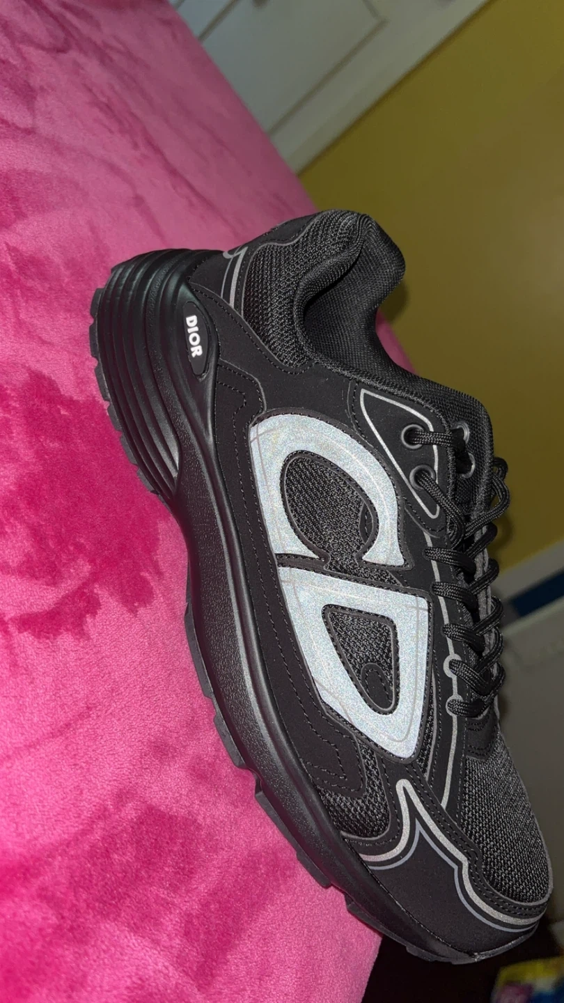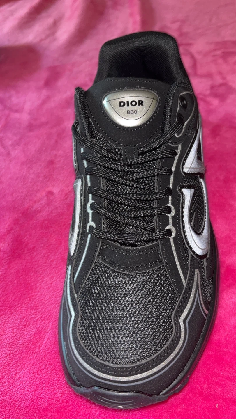 Selling a pair of Dior B30 sneakers in black. They're in great condition and ready for a new home! The shoes feature the iconic Dior logo and a sleek design. Perfect for adding a touch of luxury to your everyday look