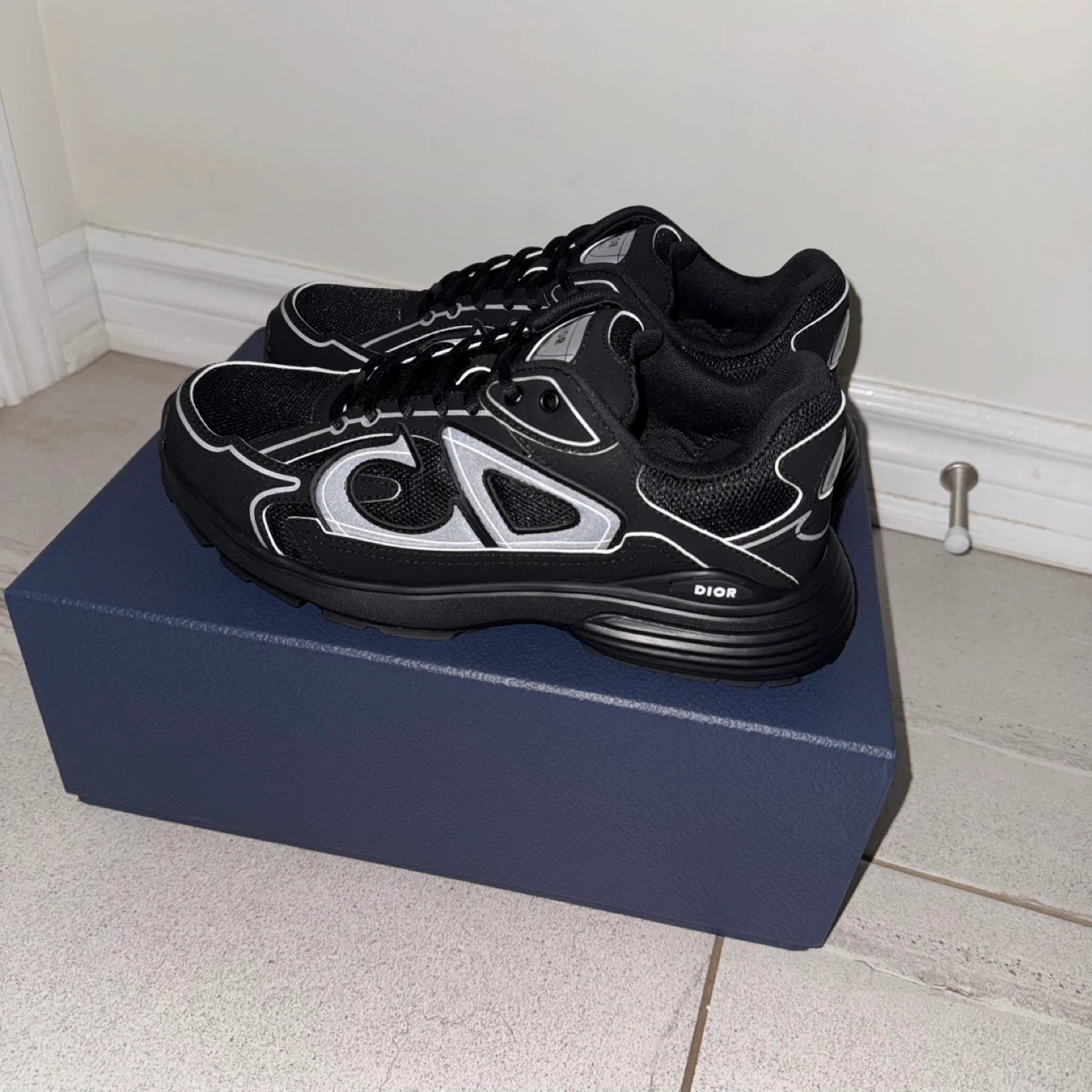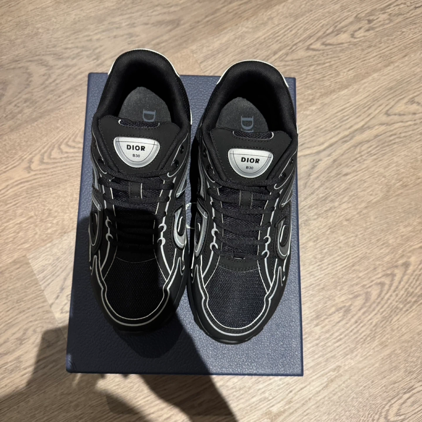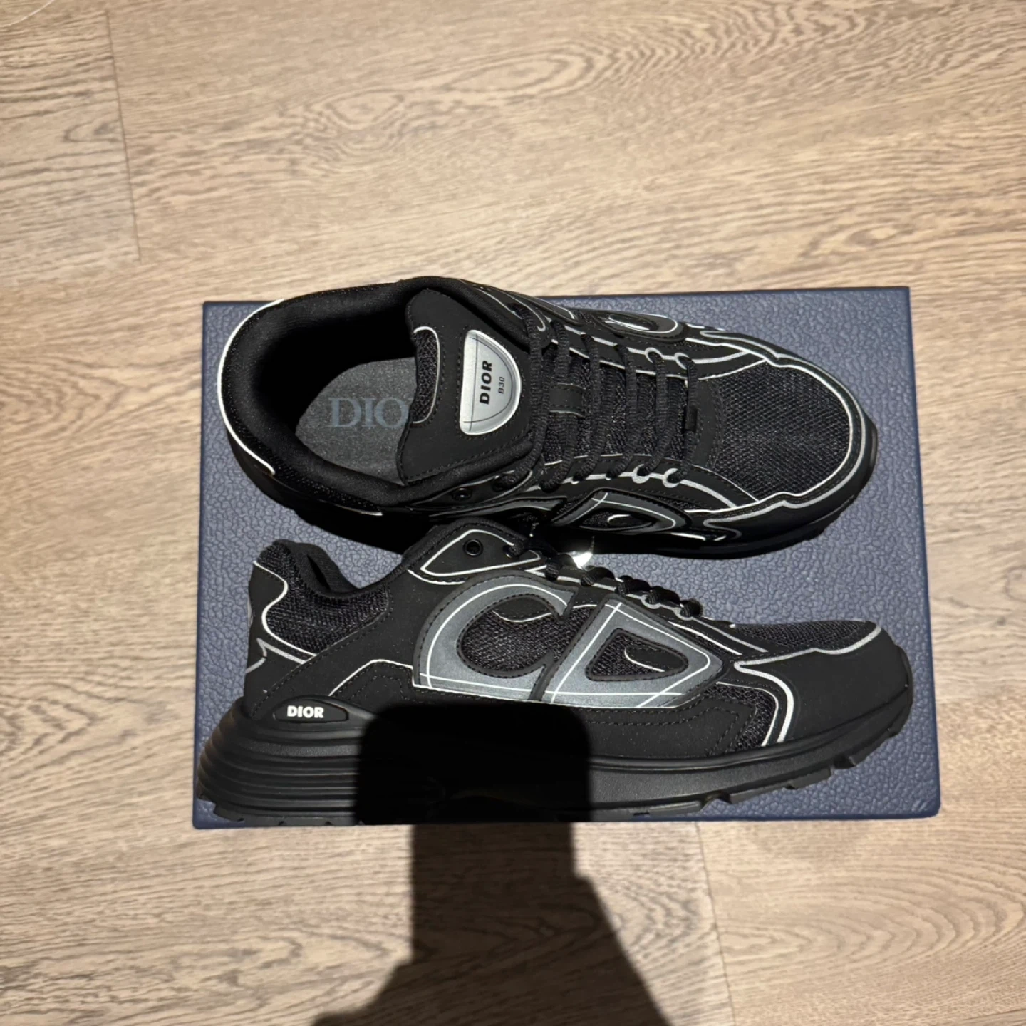 Selling a pair of Dior B30 sneakers in black! They come with the original box. The shoes feature the 'CD' logo. Great for adding a touch of luxury to your everyday style!