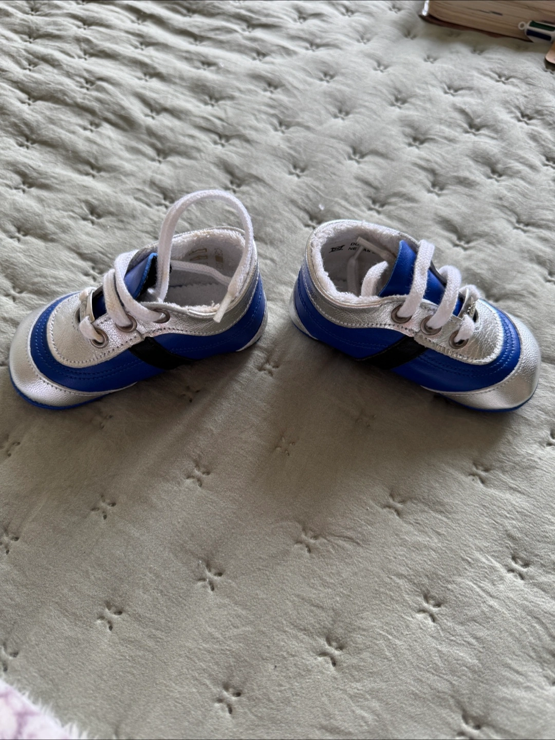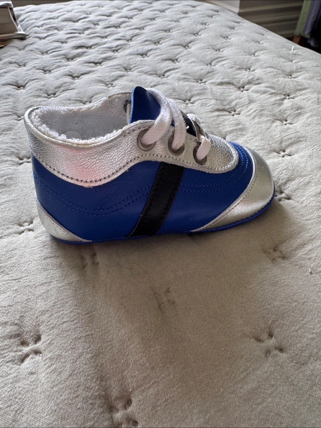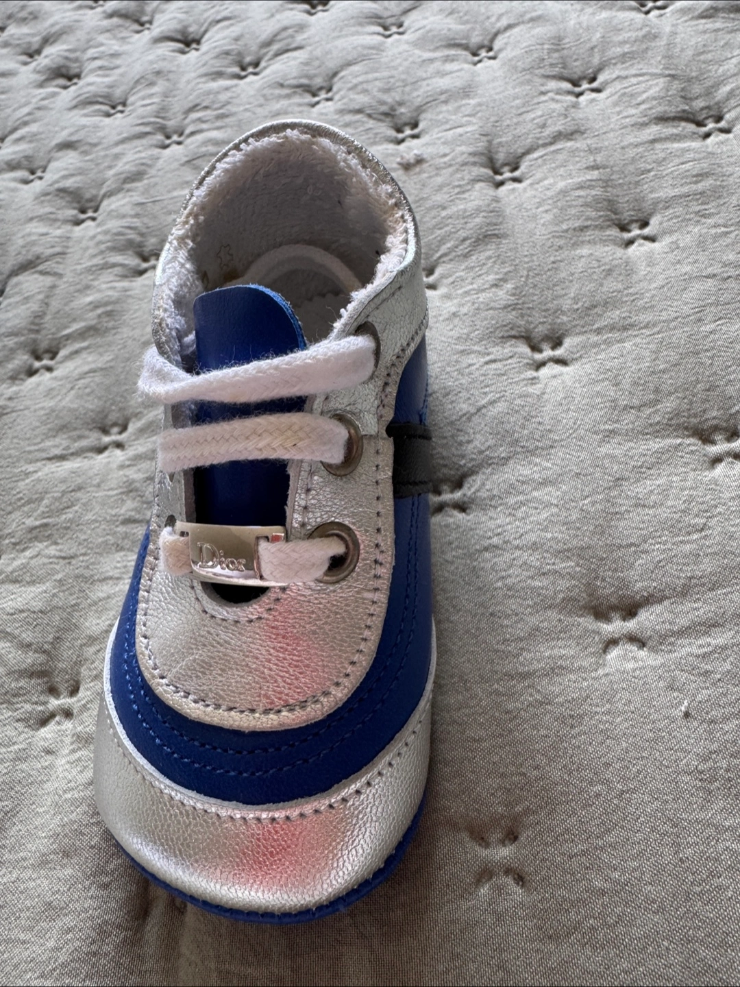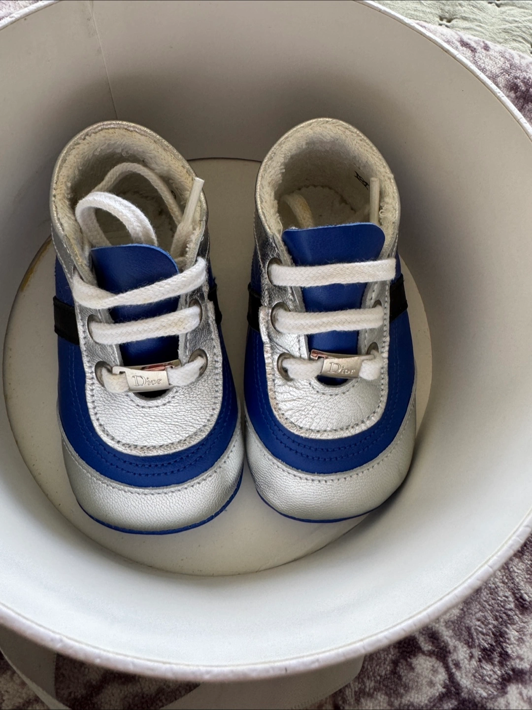 Dior Adorable baby shoes. Blue and silver leather. Comes in original box. Lace-up style.