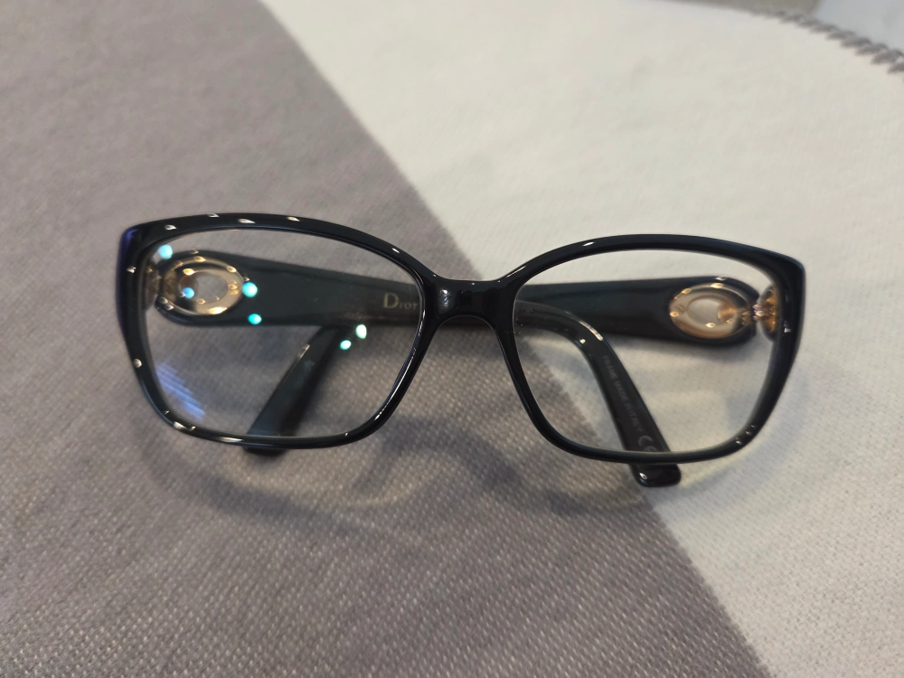 Selling a pair of vintage, very lightly worn DIOR Eyewear rectangle frame black acetate optical frame with gold oval accent on arms. model: Dior pn406aon1r, made in Italy. In perfect condition (currently with custom essilor progressives which you should replace with your own lense). Don't have original case but will provide another case. smoke free, pet free home. pickup only in cariboo burnaby. open to offer, no low ball please.