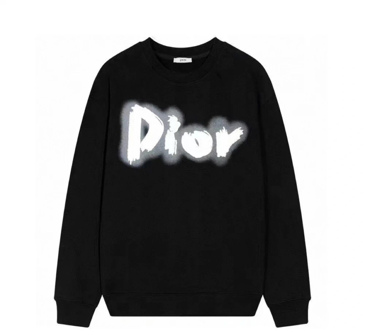 Selling a stylish black Dior sweatshirt. It features the Dior logo in white on the front. Perfect for a casual yet fashionable look!