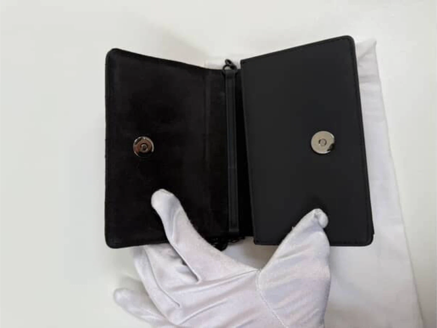Selling a Dior Lady Dior chain wallet in matte black! It's in great condition and comes with a chain strap. CD Chain Pouch (mini size) Black ultra matte quilt calfskin with BHW Condition: 9.5/10 - minor wear Dimensions: approx. 5 x 2 × 3.5" Strap Drop: approx. 21" Details: can be worn as belt bag Includes dust bag and third party authentication