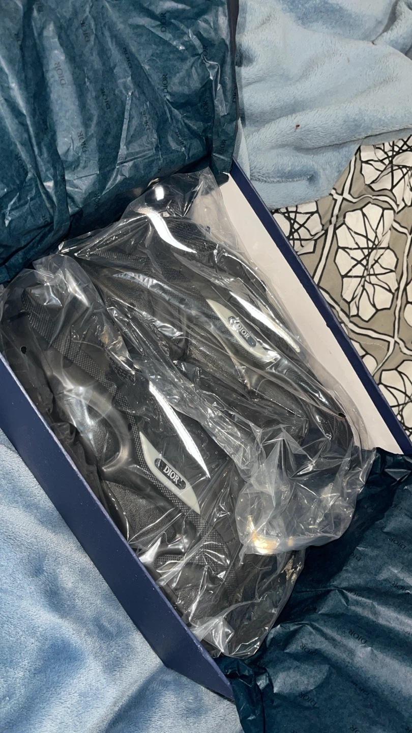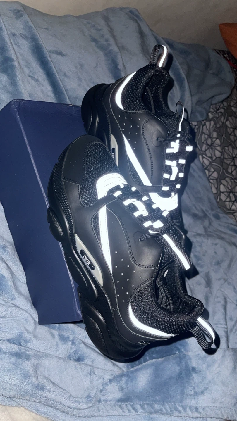 Selling a pair of Dior B22 sneakers in black. These stylish shoes come with the original box. The soles have a 'CD' logo and 'Made in Italy' marking. Great for adding a touch of luxury to your everyday wear size 9 bRand new
