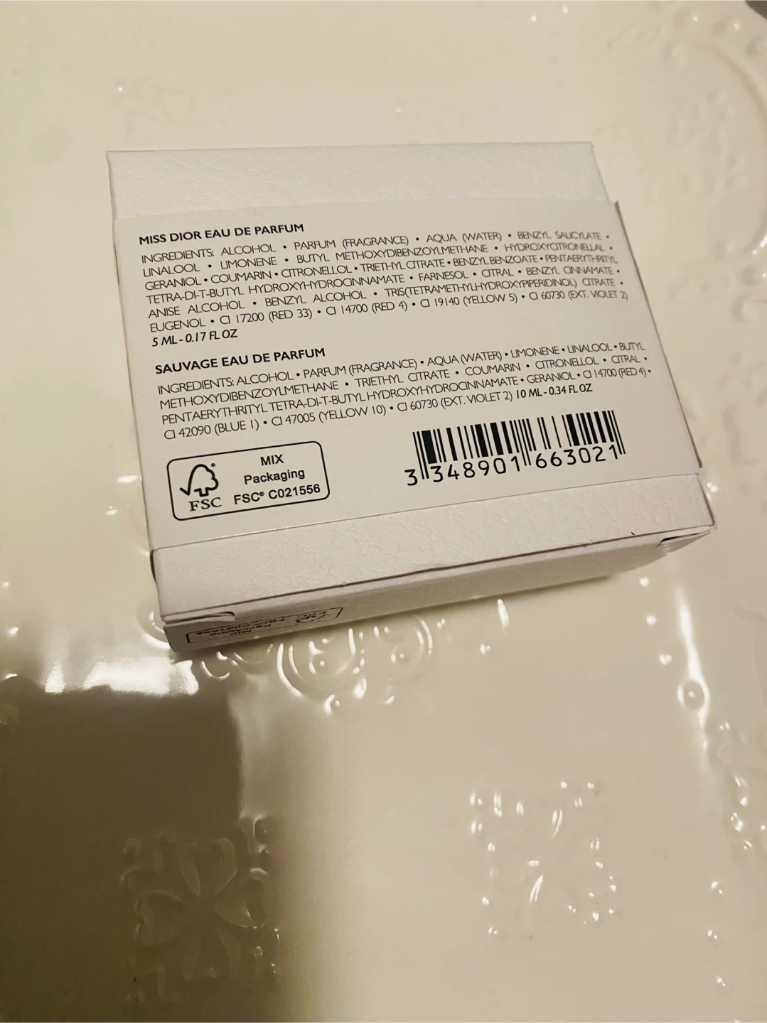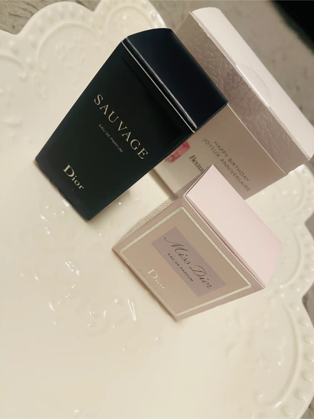 Selling a cute miniature perfume set from Dior! Includes Miss Dior Eau de Parfum (5 mL / .17 fl.oz) and Sauvage Eau de Parfum (10 mL / .34 fl.oz). Great for travel or trying out new scents. First come first serve Cash only