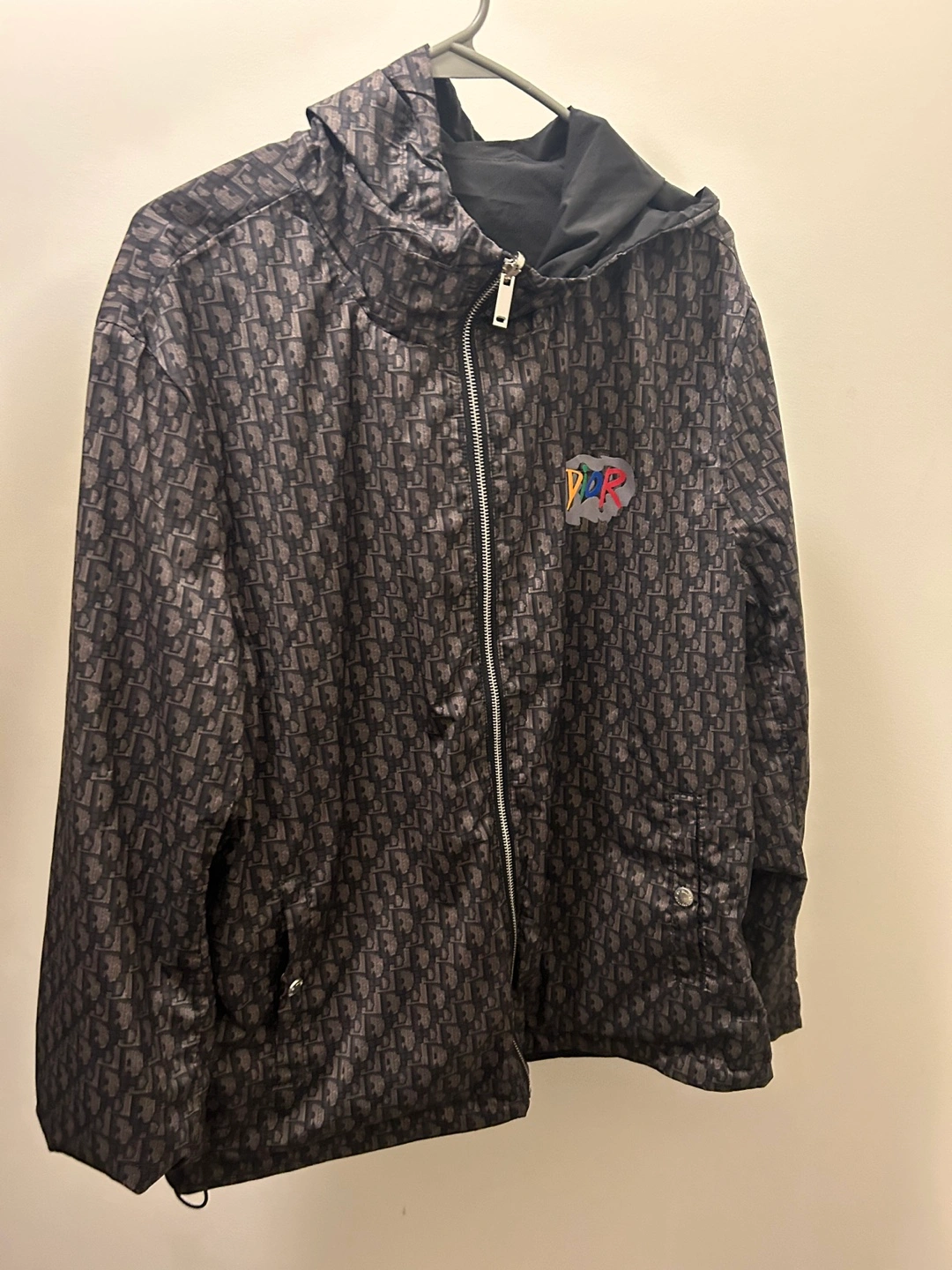 Selling a Dior jacket with the iconic Oblique pattern. It's reversible, giving you two looks in one! The jacket features a hood and a zipper closure. It's in great condition and ready for a new home