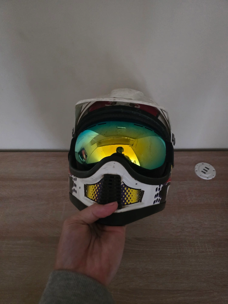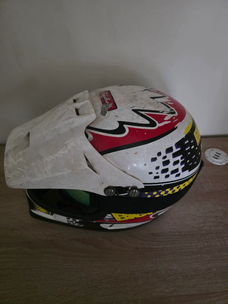 selling my dirtbike helmet with ski goggles don't know the size but it's a really good helmet it isn't new or in new condition but it's in pretty good condition selling cause I don't use it anymore so maybe someone who needs one will enjoy the helmet